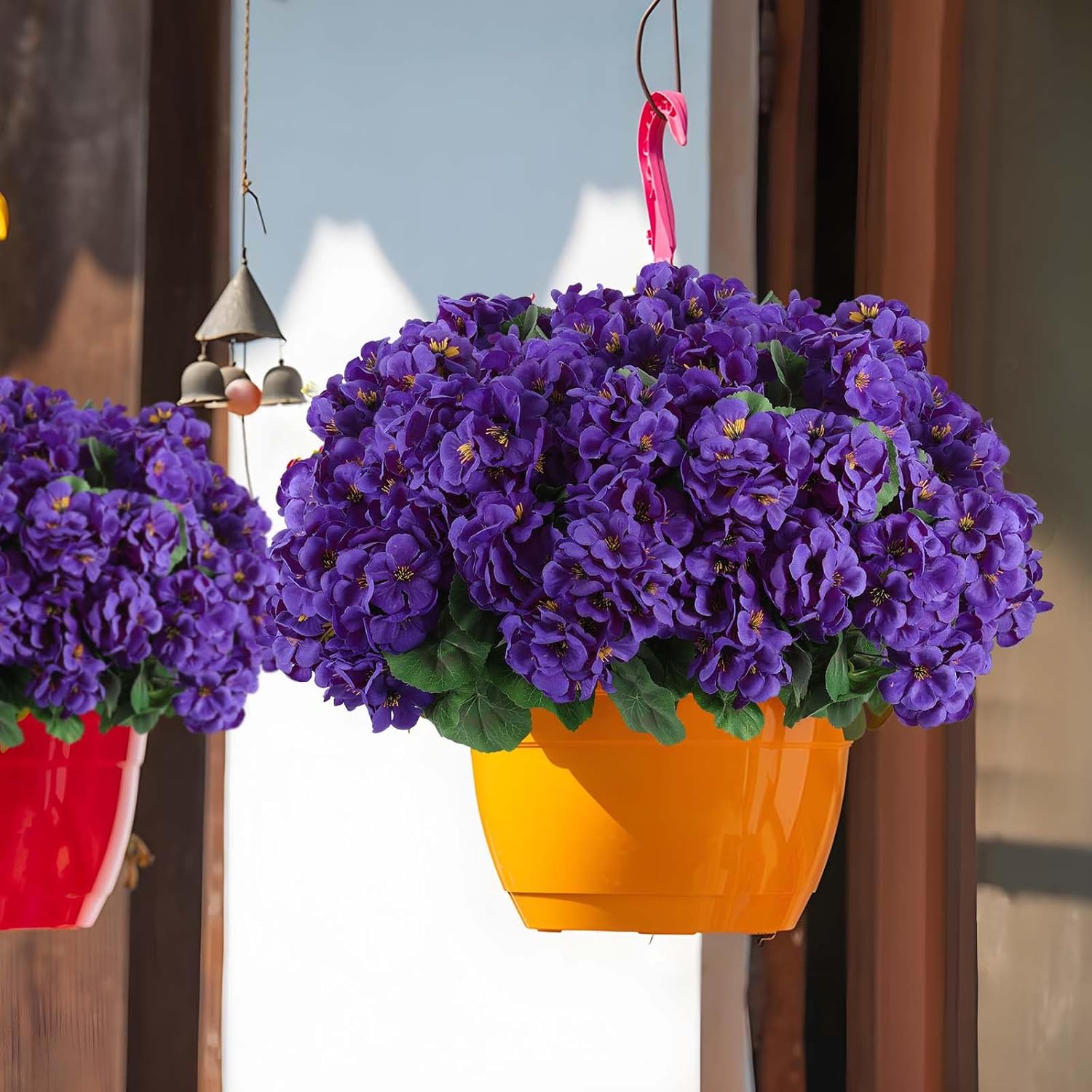 Hananona 12 Pcs Artificial Geranium Flowers for Outdoors Silk Purple Geranium Flowers Outdoor UV Resistant Plants Faux Flower for Home Kitchen Table Centerpieces Front Door Patio Decor (12, Purple)