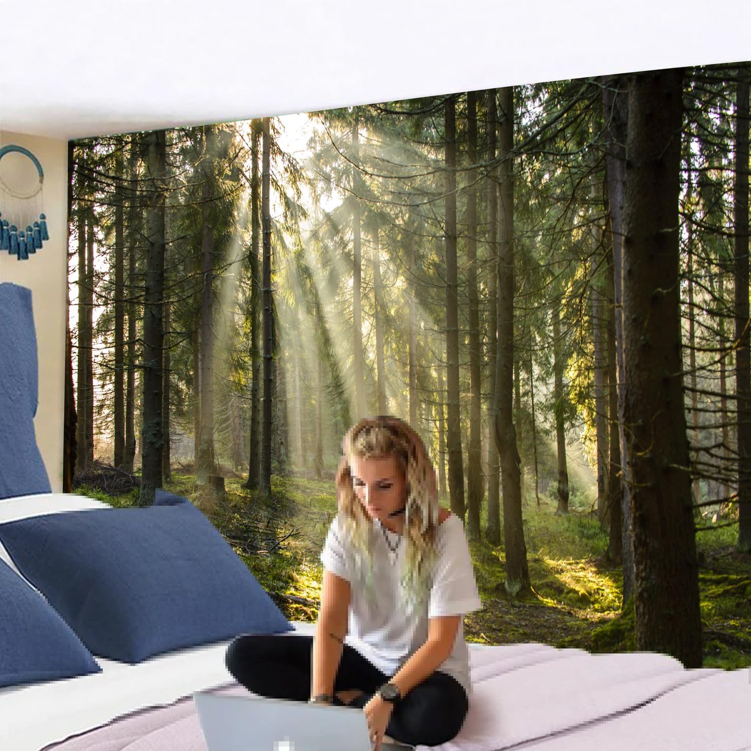 - High Quality: The forest tapestry for bedroom is made of high-quality lightweight polyester fabric with hand-sewn finishes, which is super soft, sturdy,skin-friendly and fadeless. Green forest tapestry wall hanging is printed with special high quality ink and advanced sublimation printing tech, pattern high-definition