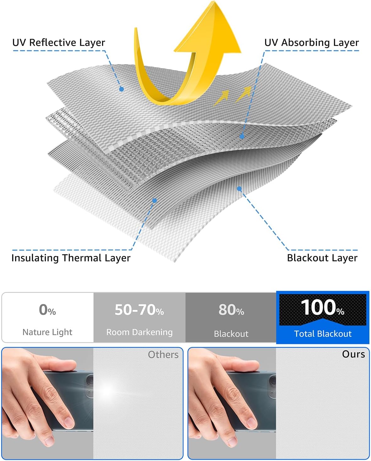 - 🌛【100% Blackout】Sumobaby blackout curtains adopts upgraded reflective silver coating and high-density black polyester, the blackout effect can easily reach 100%. Blocks sunlight and harmful UV rays to darken your room, thermal insulated and enhance privacy.