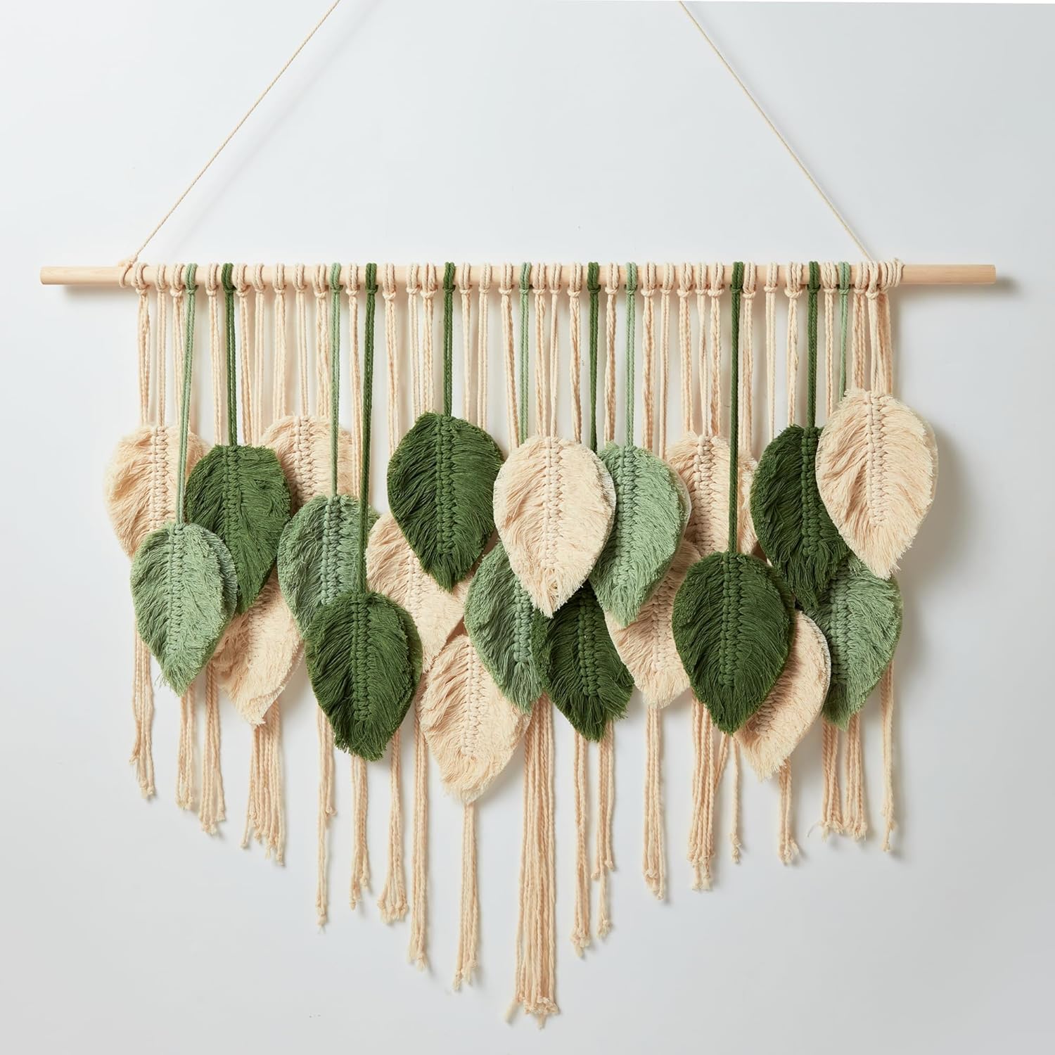 - 【Effortless BoHo Wall Decor】- The boho wall tapestry is easy to install, just assemble the two wooden rods together, then adjust the spacing between the tassels and leaves. Please be careful with your hand when nailing the plastic no-mark hook
