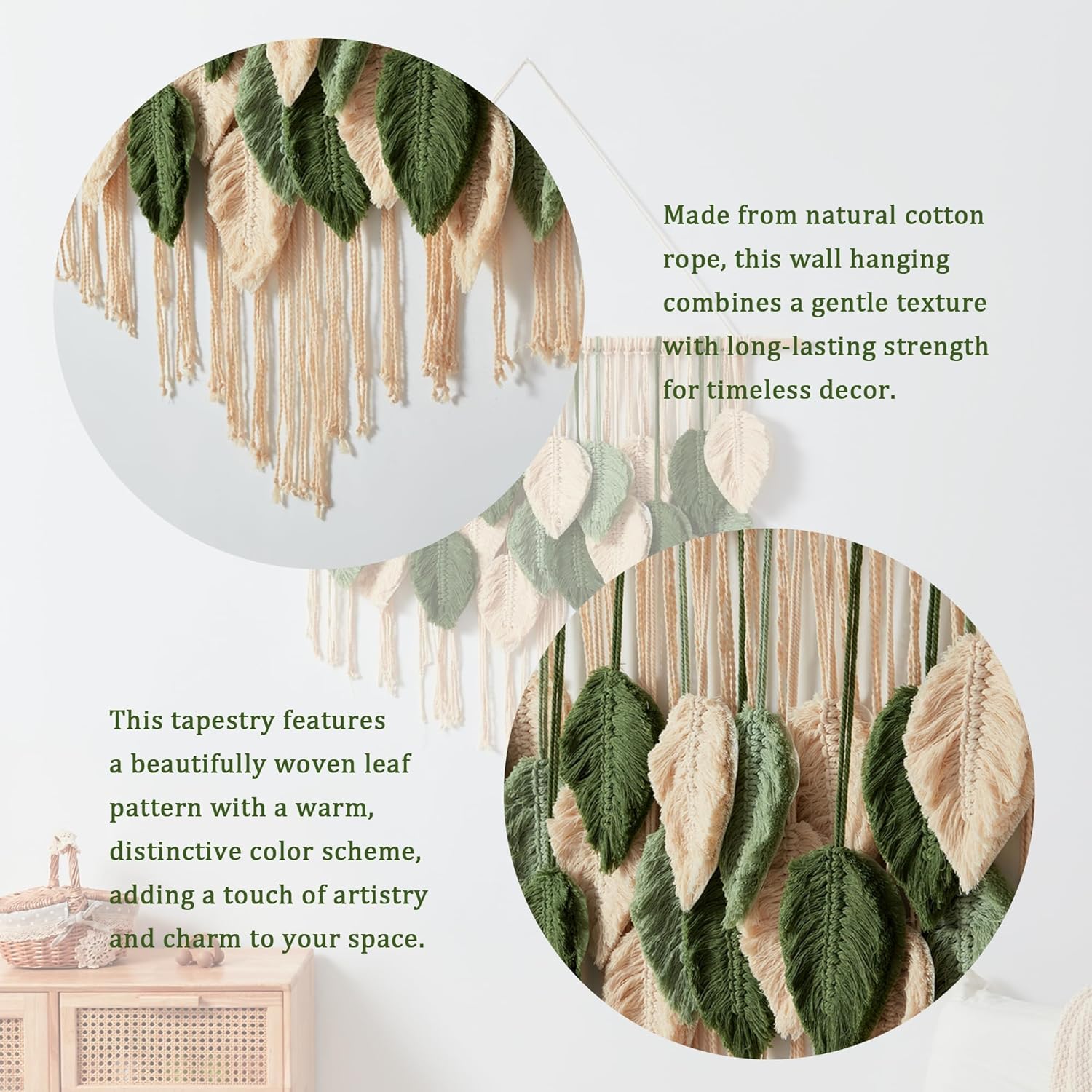 - 【Handcrafted Cotton】- Crafted from durable, high-quality cotton, this tapestry wall hanging ensures longevity and maintains its elegant woven texture. Perfect for adding softness and organic charm to any room