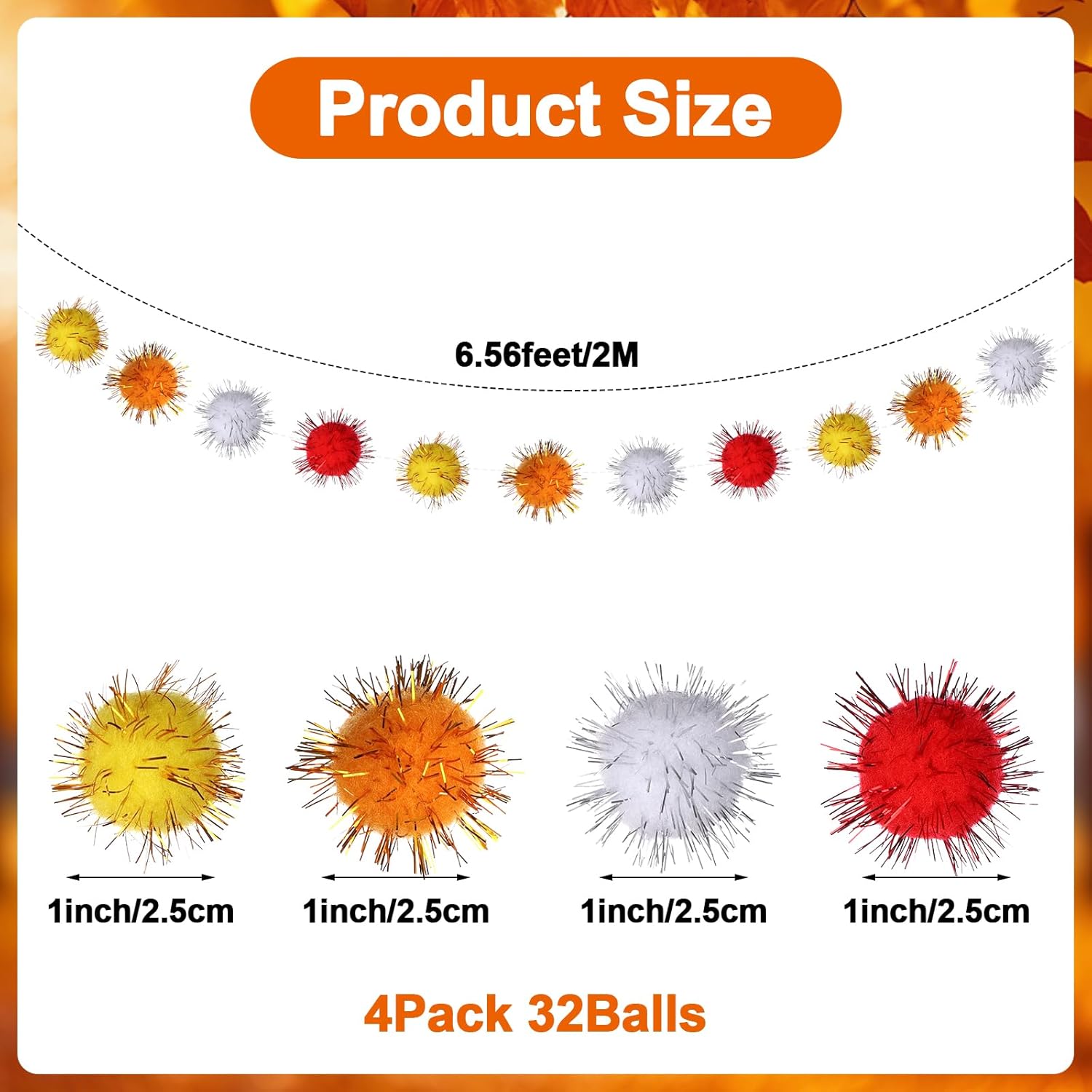 - Easy to Hang: We have assembled the pom balls, and you can hang the glittery pom pom garland in any position according to your preferences and needs without complex installation steps or other tools. You can hang autumn fluffy balls anywhere, which is the ideal choice for adding autumn flavor and home decoration
