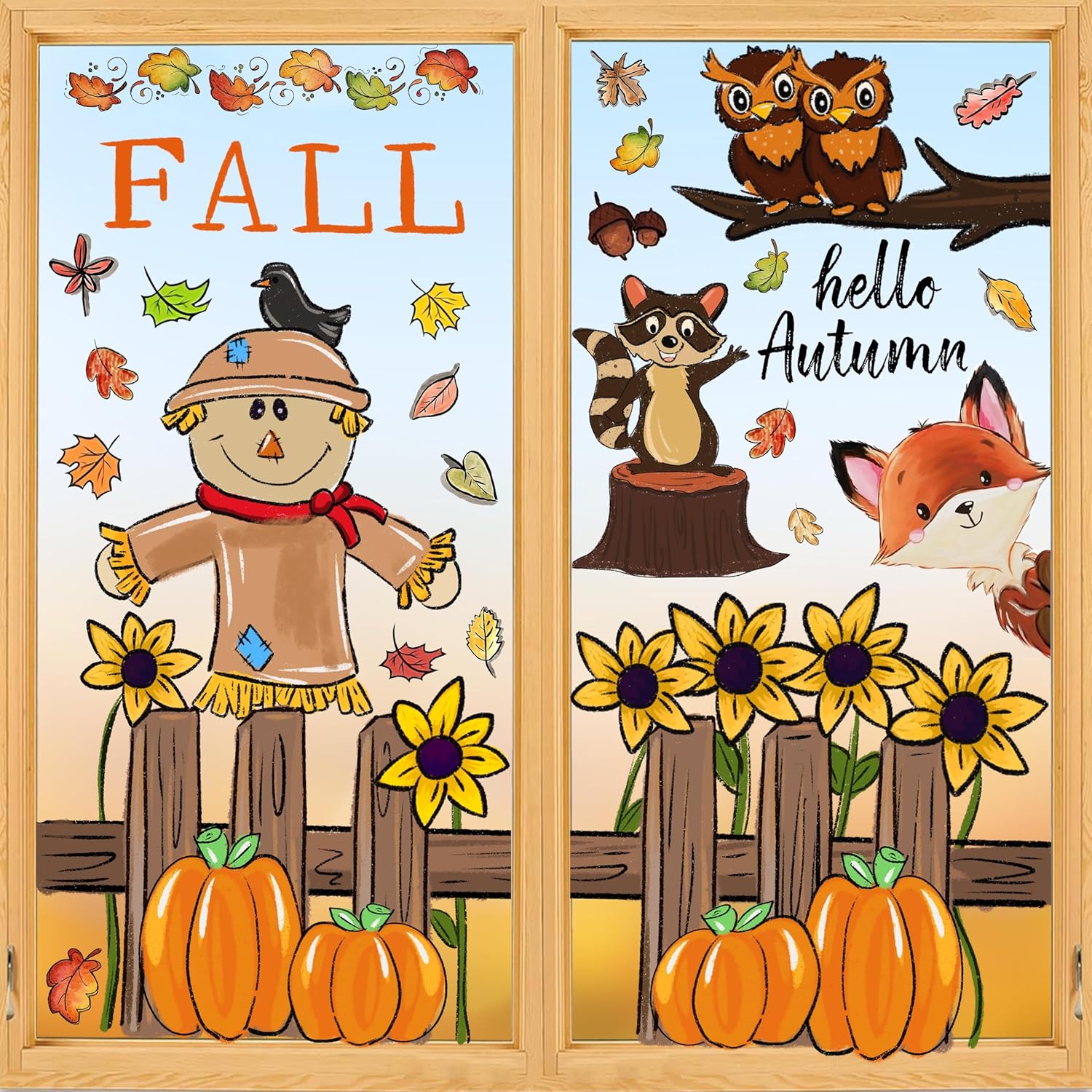 - Fall Window Clings - 6 sheets Fall Window Clings Decorations for Glass set, sufficient quantity, you can enjoy DIY your favorite Fall window stickers with your family and friends.