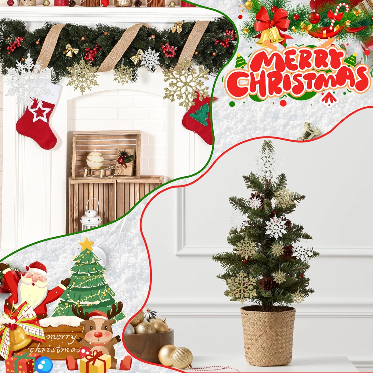 36pcs Snowflakes-Christmas Tree Decorations, Snowflake Ornaments for Tree, Plastic Glitter White Gold Snow Flakes Ornaments, Christmas Indoor Winter Wonderland Frozen Birthday Party Holiday Home Decor