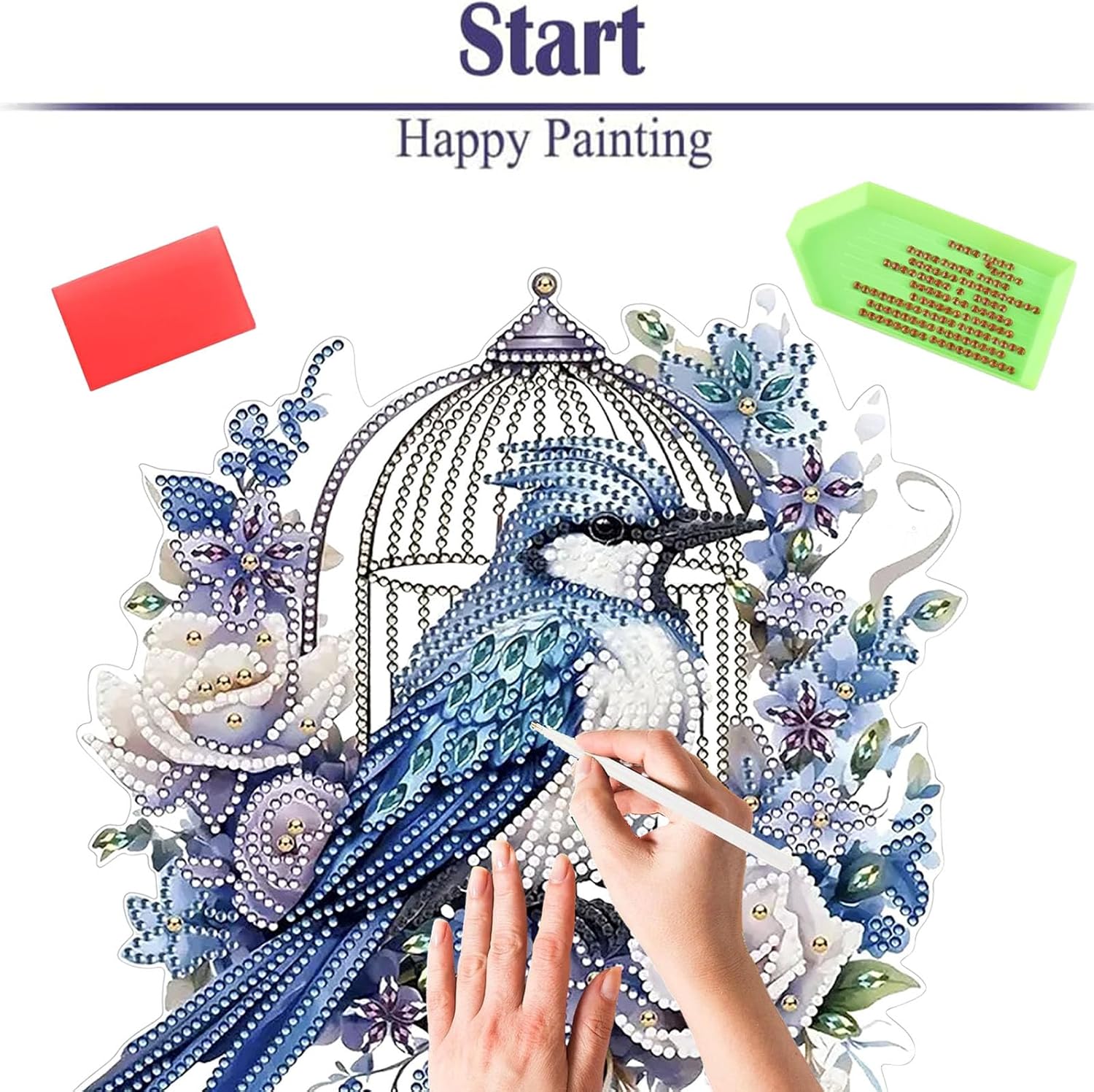 Diamond Painting Kits for Adults Beginners, 5D Full Drill Bird Crystal Art Desktop Ornament, DIY Single Sided Home Office Desk Decor, Creative Craft Gift Set with Tools