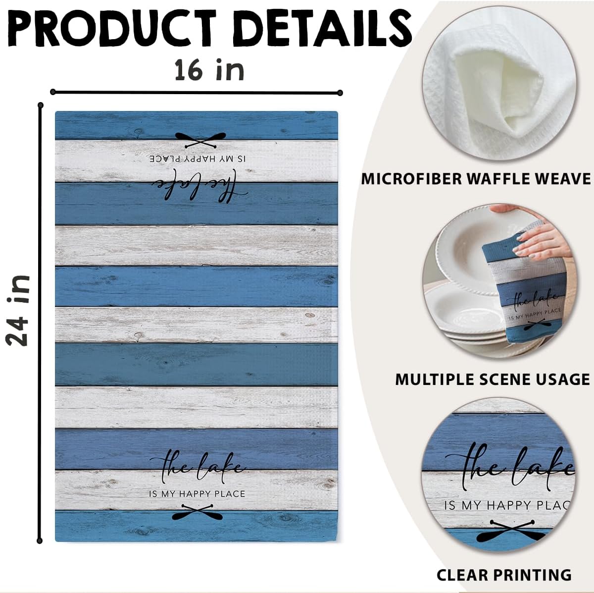 Lake House Dish Towel, Waffle Weave Microfiber Kitchen Cloth, Rustic Lake Decor for Home, Nautical Bathroom Accent, Lakehouse Gift Idea for Cottage Cabin Vacation Retreat - A04
