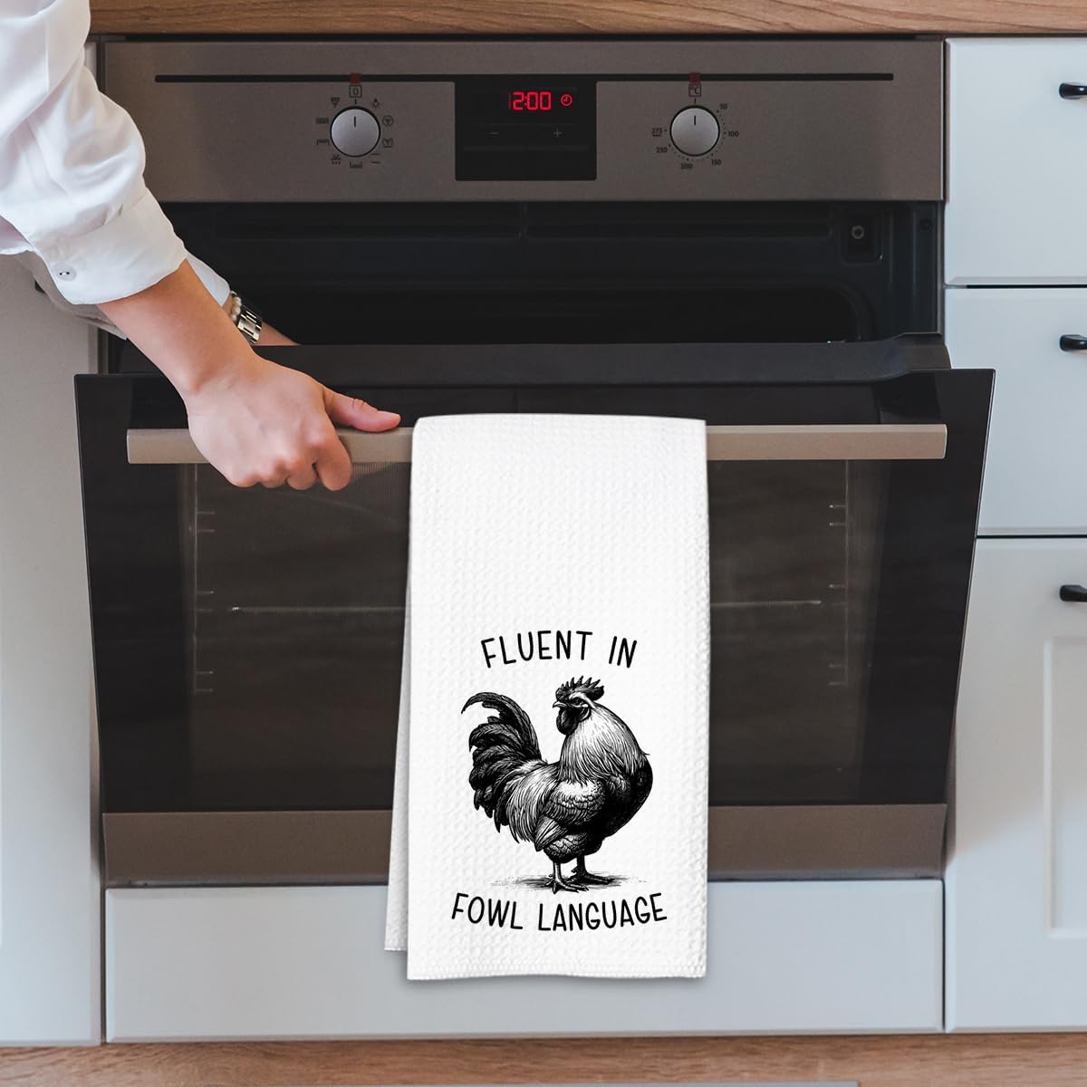 Chicken Dish Towel, Waffle Weave Microfiber Kitchen Cloth, Rustic Rooster Decor Accent, Farmhouse Style Gift for Chicken Lovers, Funny Country Hand Towel for Kitchen Bathroom - A05