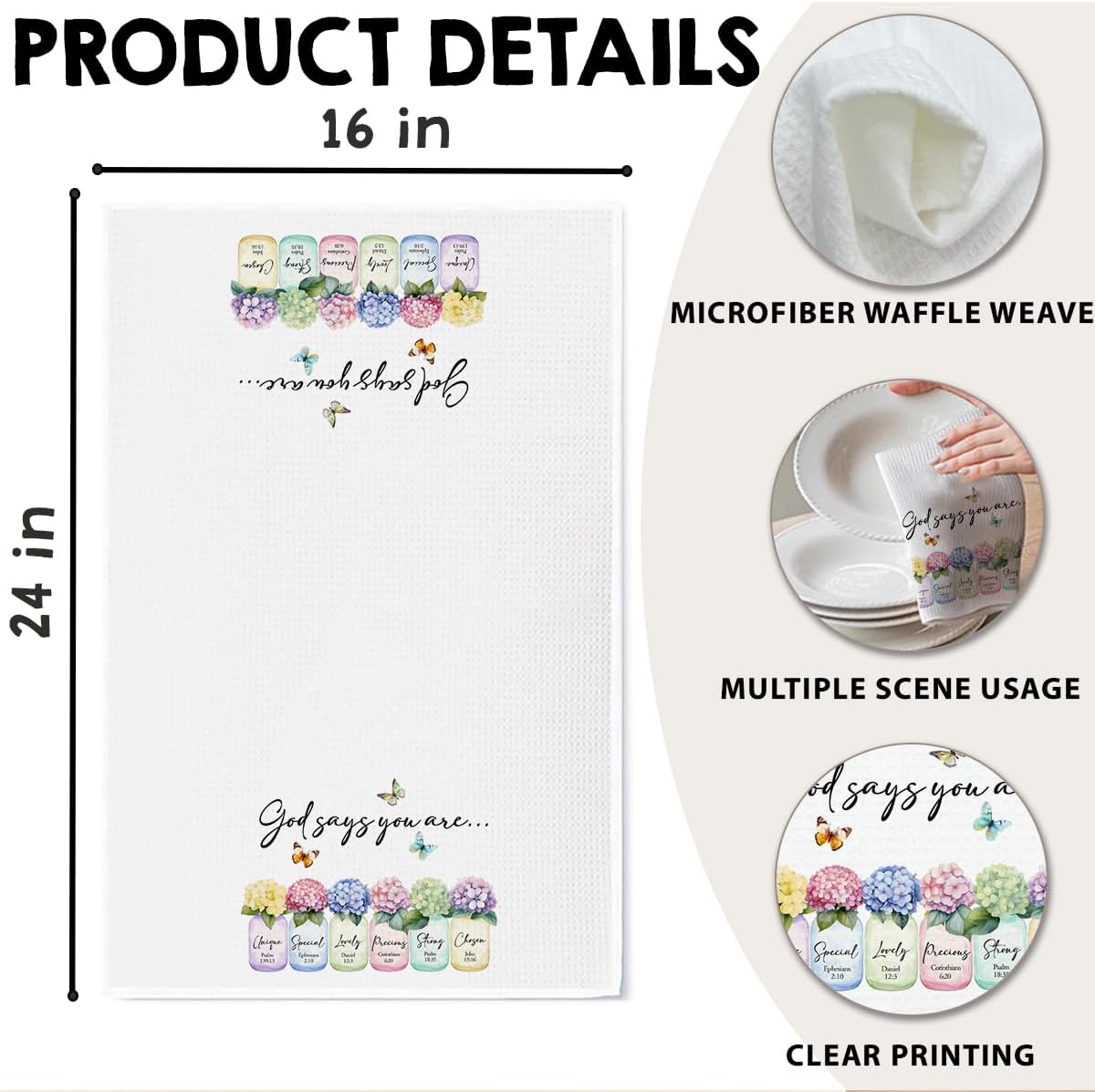 Christian Kitchen Towel, Waffle Weave Microfiber Scripture Hand Towel, God Says You are Bible Verse Farmhouse Decor for Kitchen Bathroom, Inspirational Gift for Women