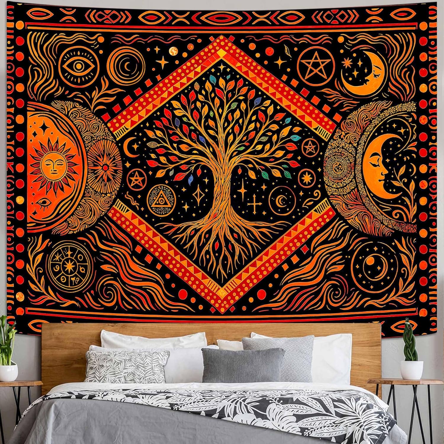 Lunerfex Tree of Life Sun Moon Stars Wall Tapestry, Cosmic Harmony Symbol Tapestries for Home Decor, Mystical Tapestry 60x44 Inch