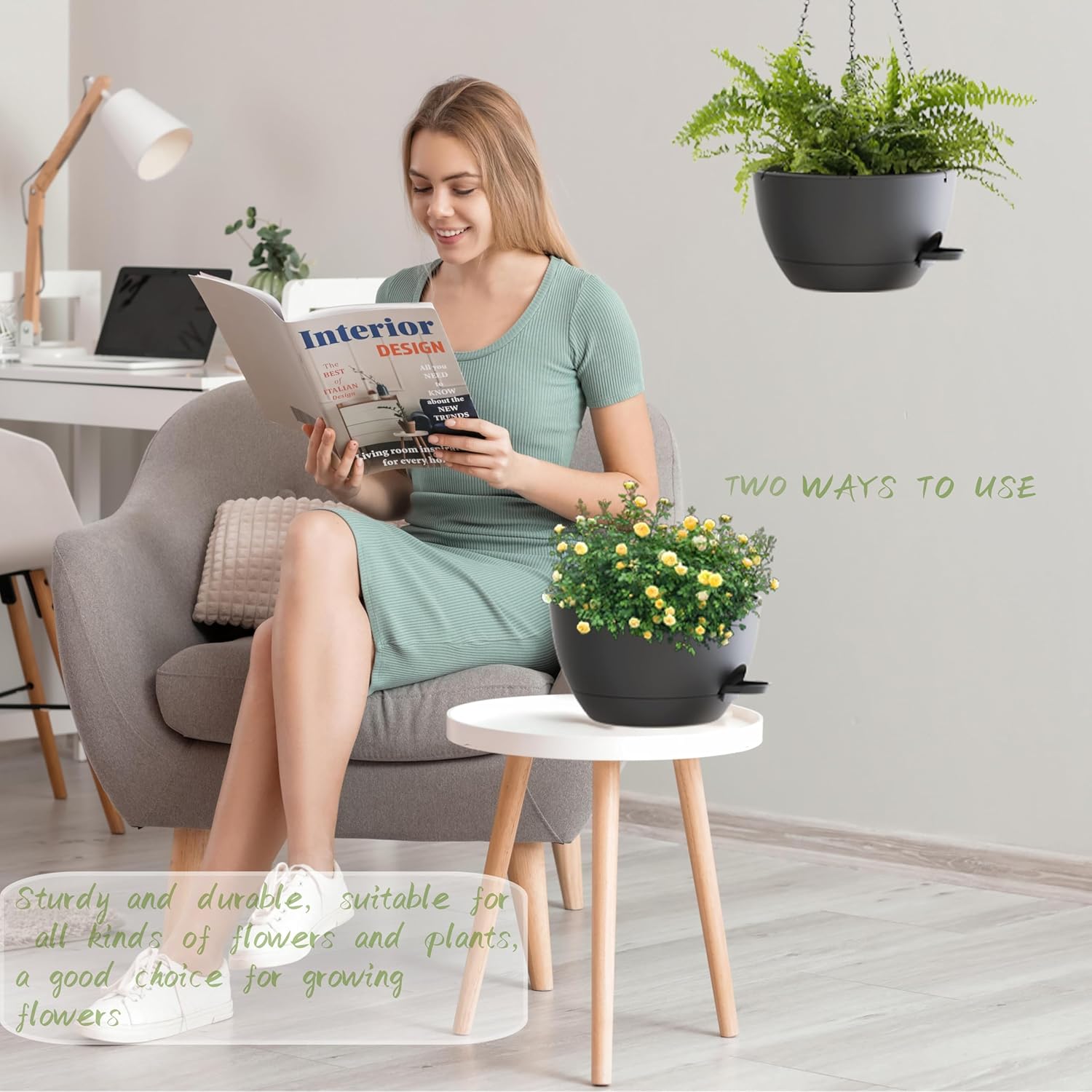 - 【Minimalist Modern Design】Trendy Colors and a Modern look allow this decorative Pot to fit into any Indoor and Outdoor setting. these 12" Hanging Pots offer generous space for your greenery. Good for creating eye-catching botanical arrangements