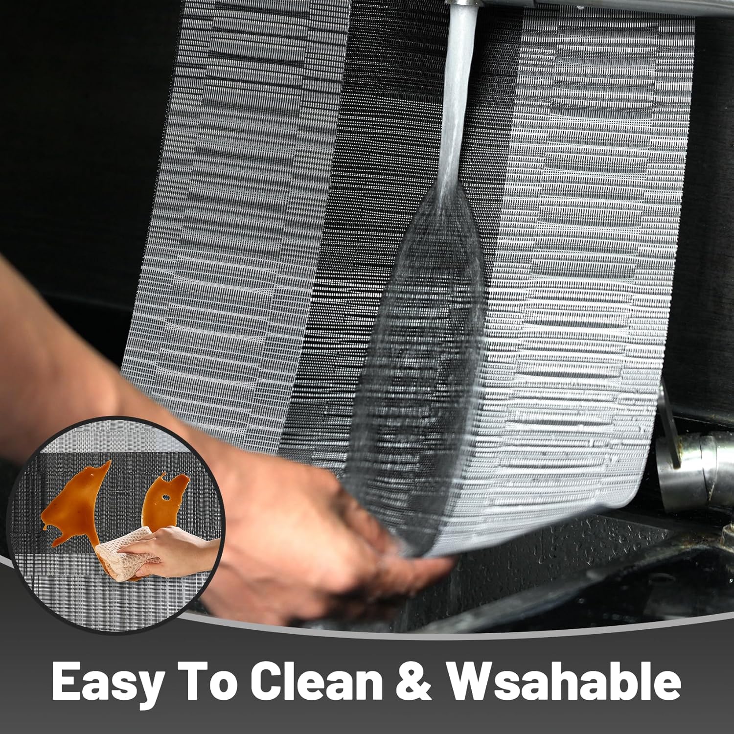 - 【East To Clean】——The washable placemats can be washed repeatedly.How to clean the place mats for kitchen table:Simply wipe with soap,water and a soft sponge or cloth.Scrub stubborn stains with a soft bristle-brush and a bleach-based cleanse.