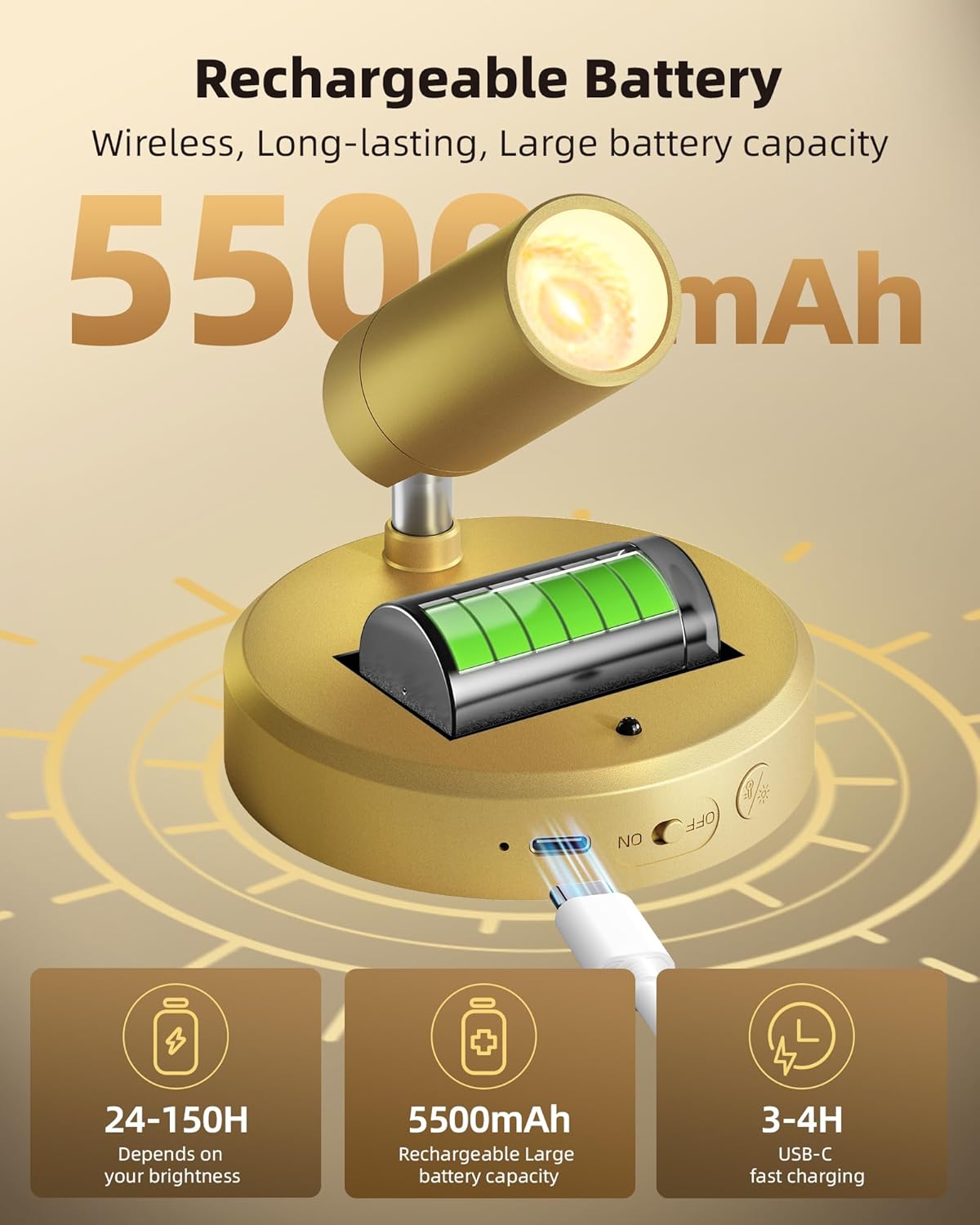 - 5500mAh Rechargeable Spotlight: The EZVALO plant spotlight indoor features a powerful 5500mAh rechargeable battery, Provide up to 150 hours of low brightness and 24 hours of high brightness lighting.Using the equipped USB-C fast charging, Battery operated spot light can be fully charged within 4 hours, providing cordless, long-lasting 100 lumens glare-free lighting,Very suitable for indoor plant lighting and picture lighting