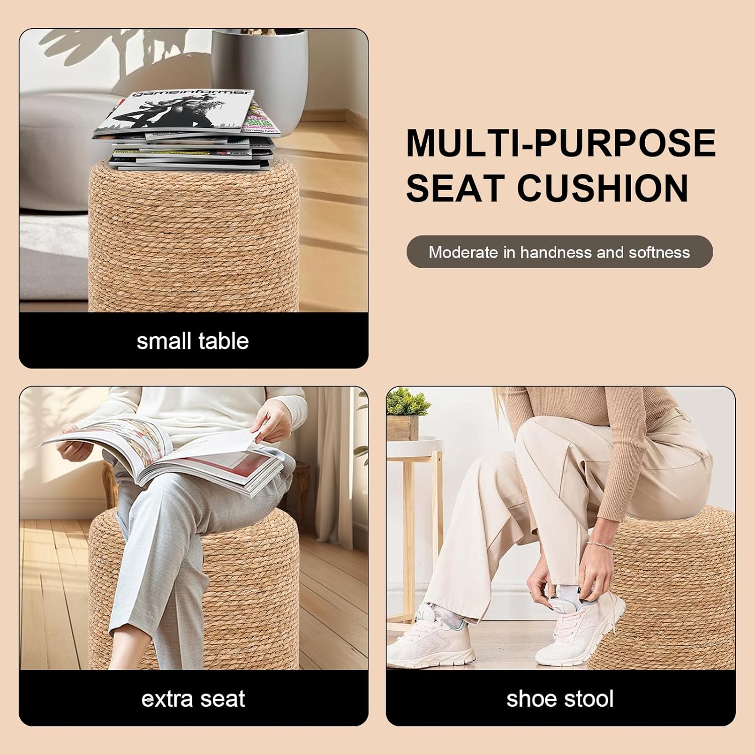- Handmade Cover: Pouf Ottoman is made of sustainable, and durable natural seaweed & corn husk braid.High-end sewing technology makes natural materials more tight and not easy to damaged.