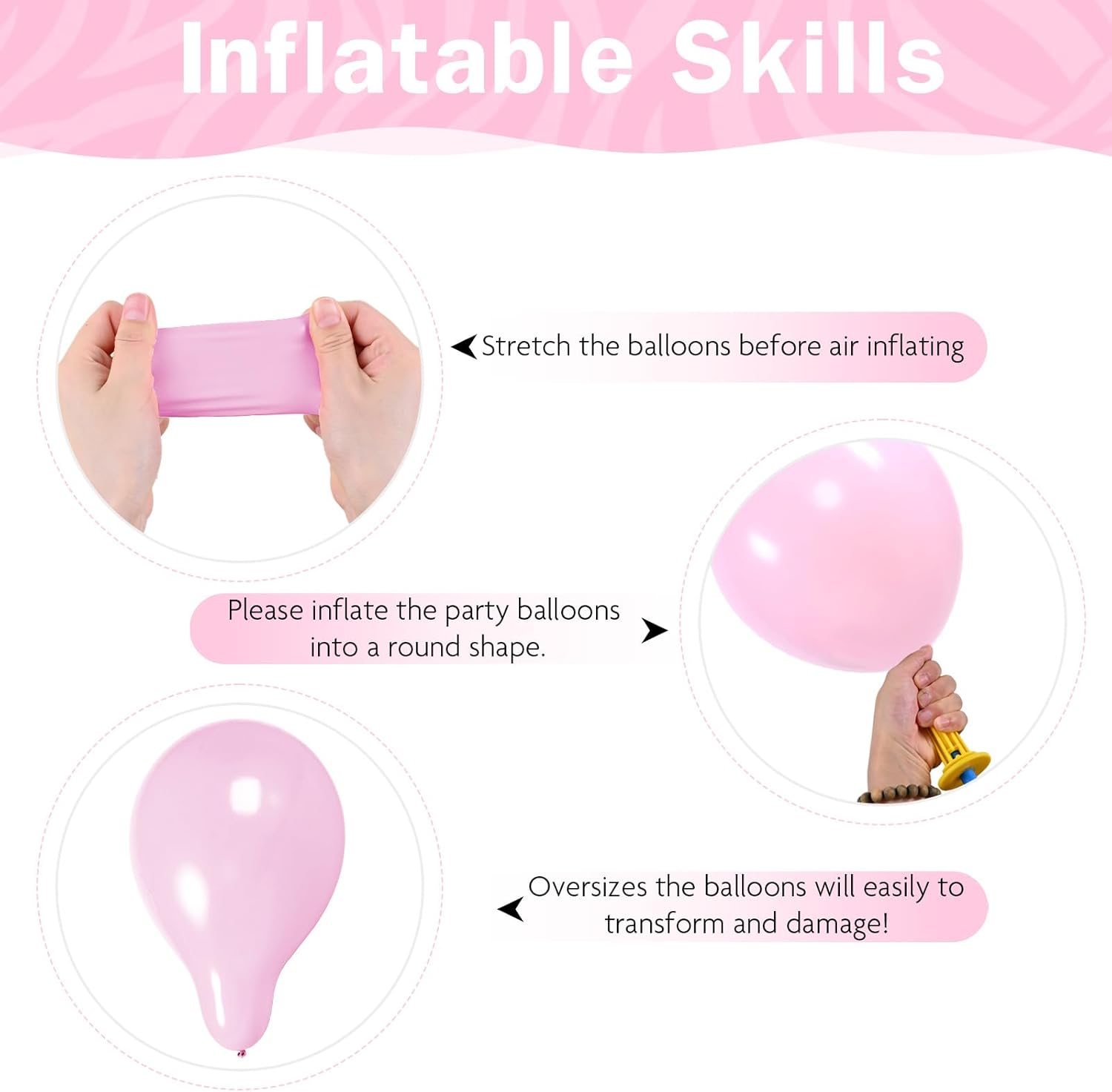 - Warm Tips: Keep kid's party balloons bulk away from direct sunlight before use to maintain quality. Inflate them into a round shape to prevent bursting. Choking Hazard: Adult supervision required. Keep uninflated birthday balloons away from children