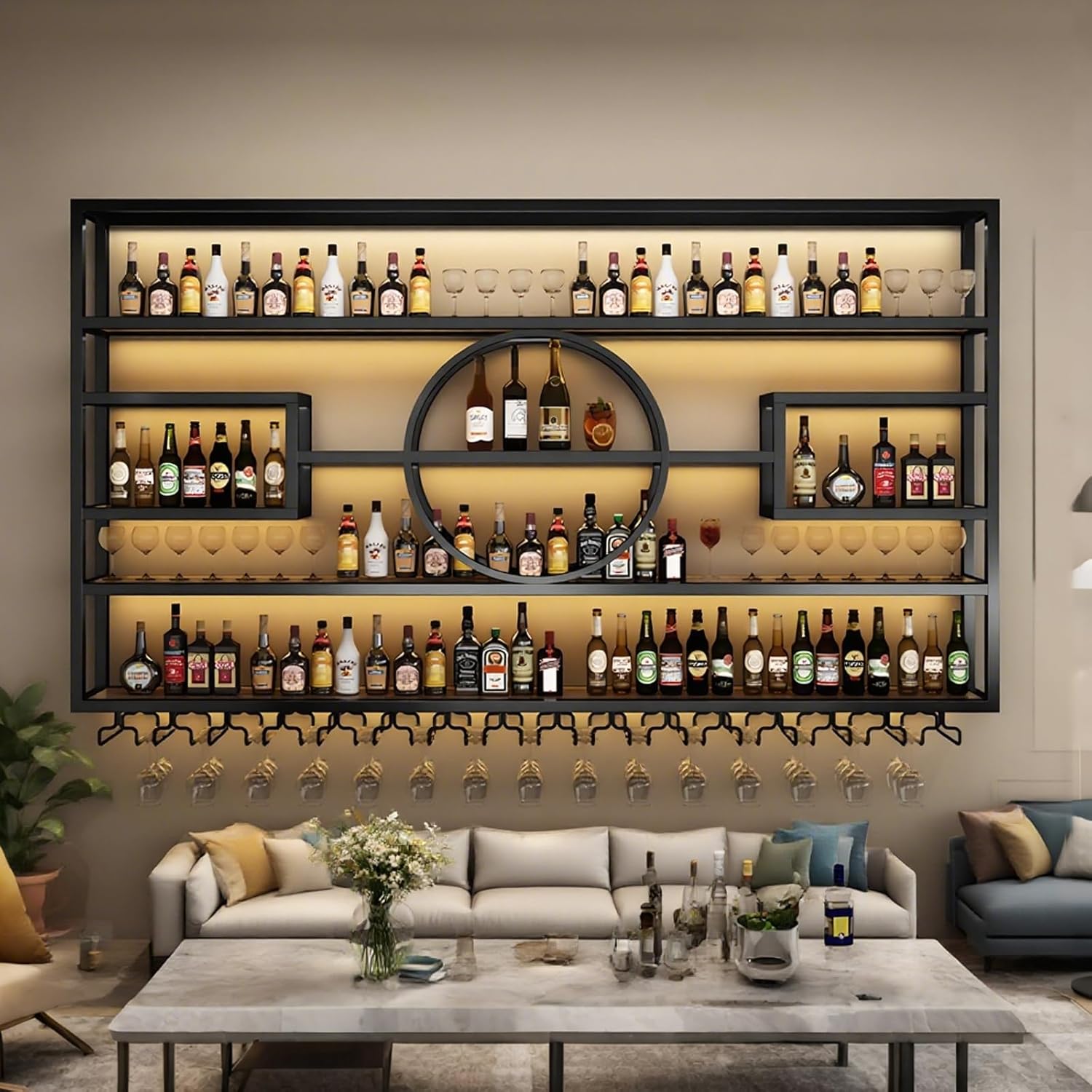 - ăLarge Storage SpaceăThe wall-mounted wine rack can be used as a bar decoration or a large wine storage cabinet. This height can store most wines or spirits when we sit at a small bar to relax all day or have a party. The wine glass rack is sturdy enough to hold more wine glasses. The wine rack doubles as a large storage rack, making the space look neat and organized