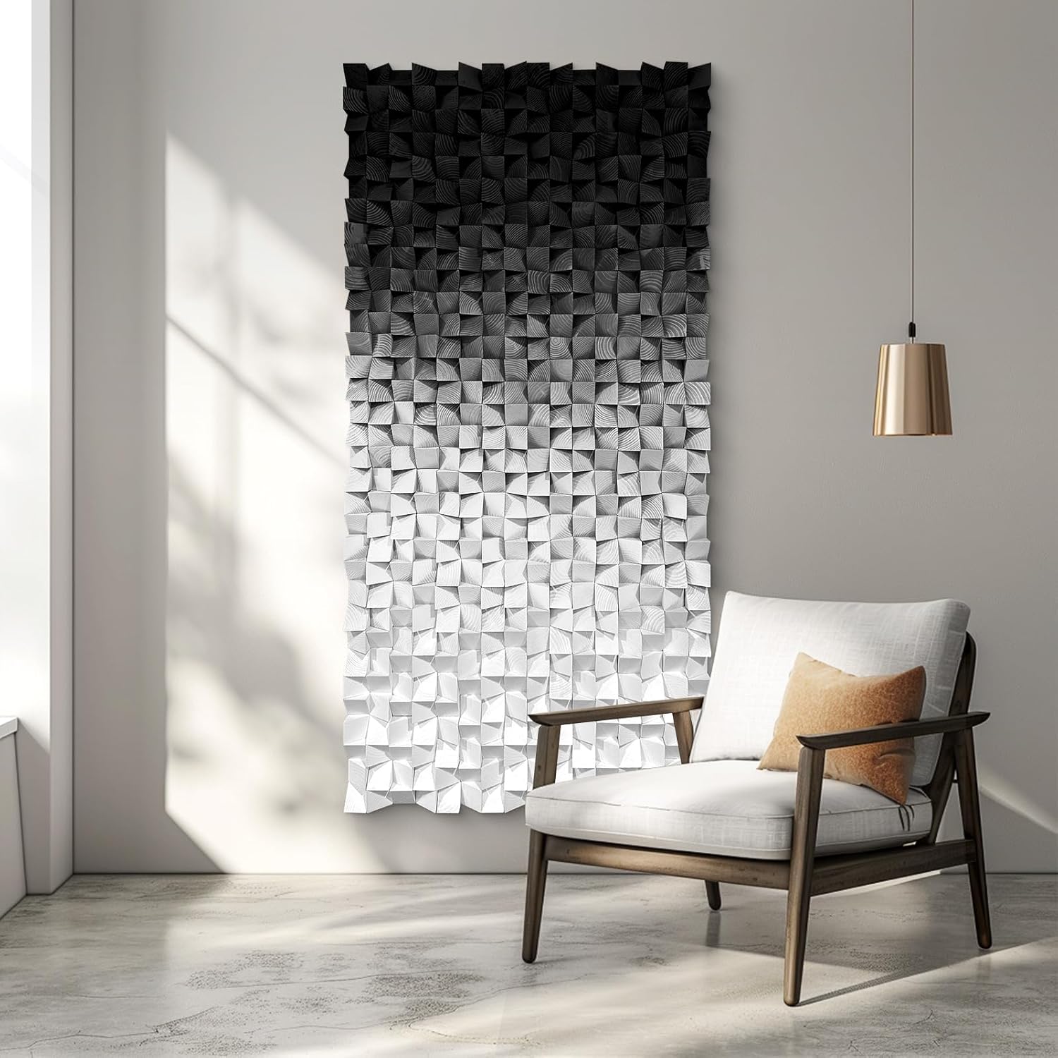 LIUZEYUE - Wooden Block Stereoscopic Painting Geometric Modeling Wall Decoration 3D Wooden Artwork Living Room Bedroom Background Wall Office Decoration Black and White Gradient 35.4"x70.8"