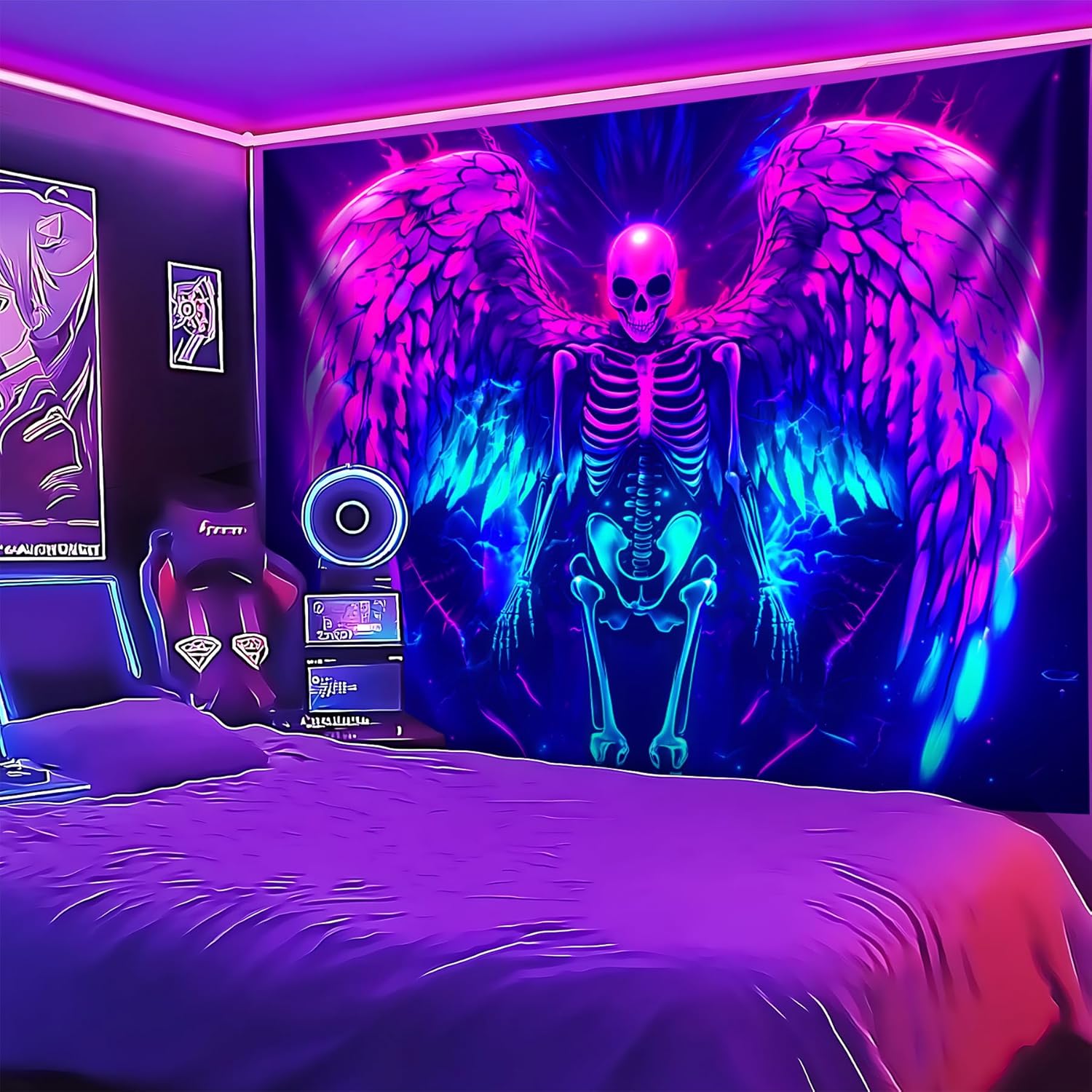 - 【Blacklight/UV Reactive】 Due to the special ink and advanced technology, the blacklight wing tapestry's colors can be changed under Black Light or UV Reactive Light. You can enjoy different effects by kinds of light, the tapestry will be amazing. Under normal light, the colors are also beautiful.