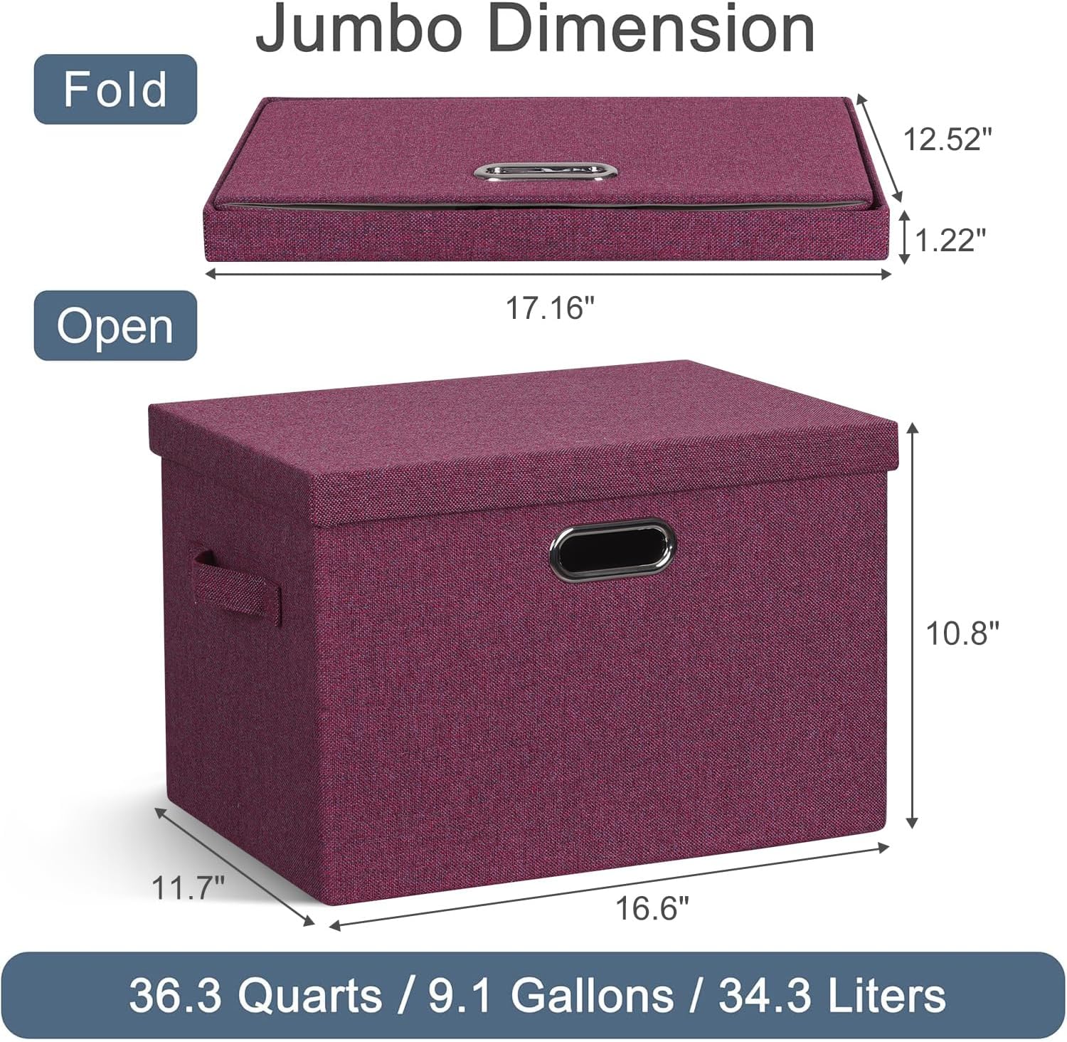 - β [Foldable Space Saver] Our Sturdy collapsible storage bins can be folded flat into lid and easy to be assembled. They can hide and hold numbers of clutters, freeing up amount of space and making everything looks organized. When you don't use them, they are very easy to be stored or carried with.