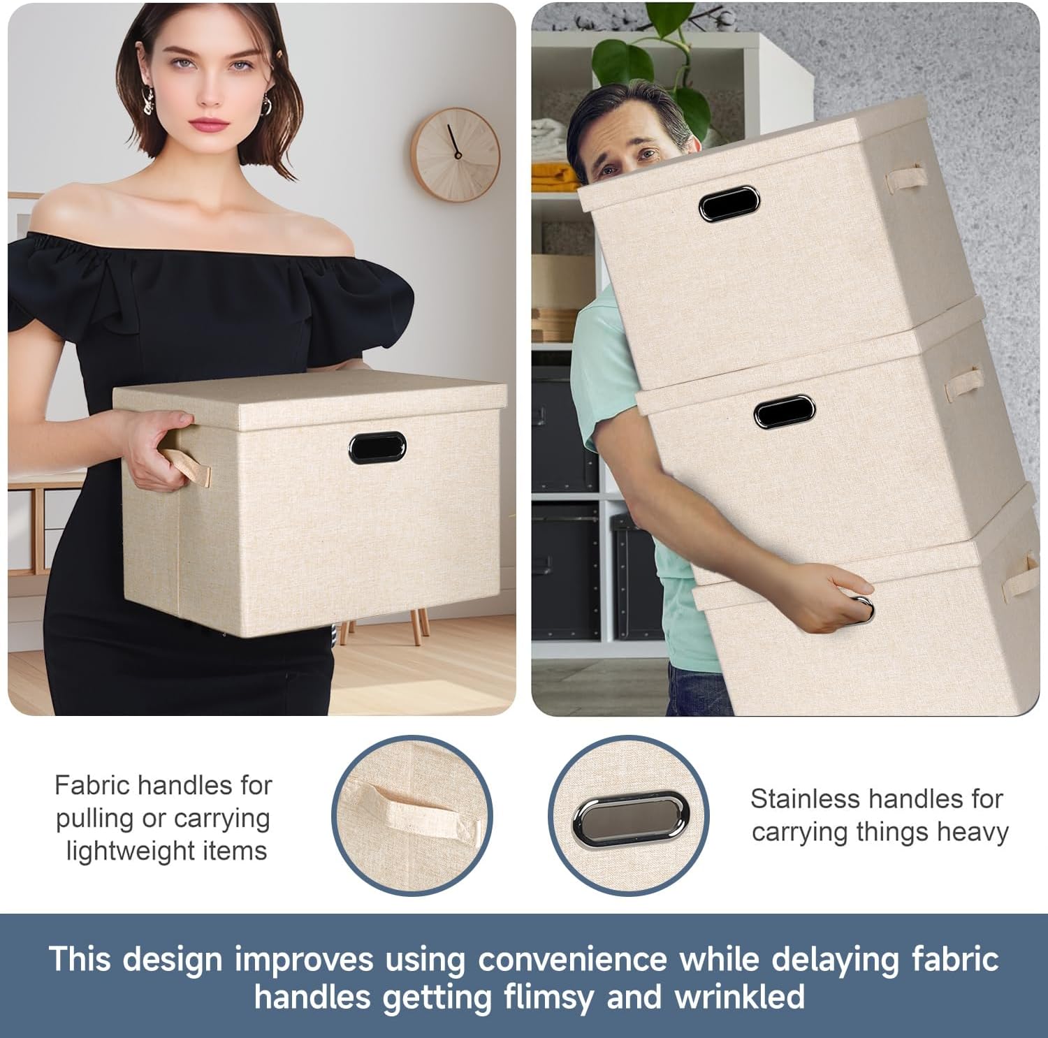 - β [Constant Use] Covered by thick textured cloth, our large lidded storage bins prevent daily wears and tears. They can keep dust and bugs out also, avoiding dirt and musty smell. You can use these decorative storage boxes with lids everyday or for long term storage.