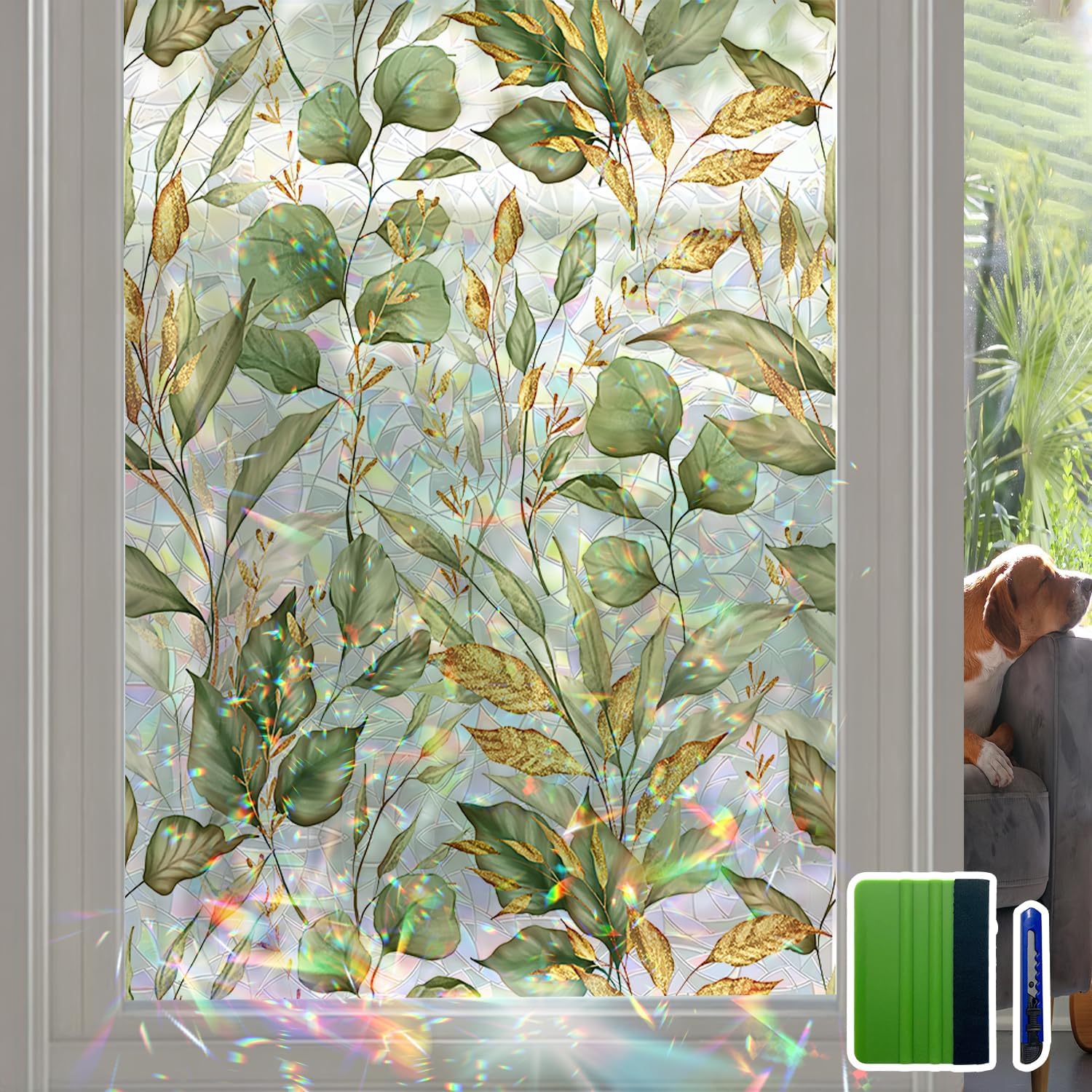 - 3D Rainbow Refraction: The privacy window film is designed by 3D Embossing process that can refract rainbow light. And the design of Spring & Autumn Leaves upgrades home aesthetics with light-filtering artistry and eliminates glare on light