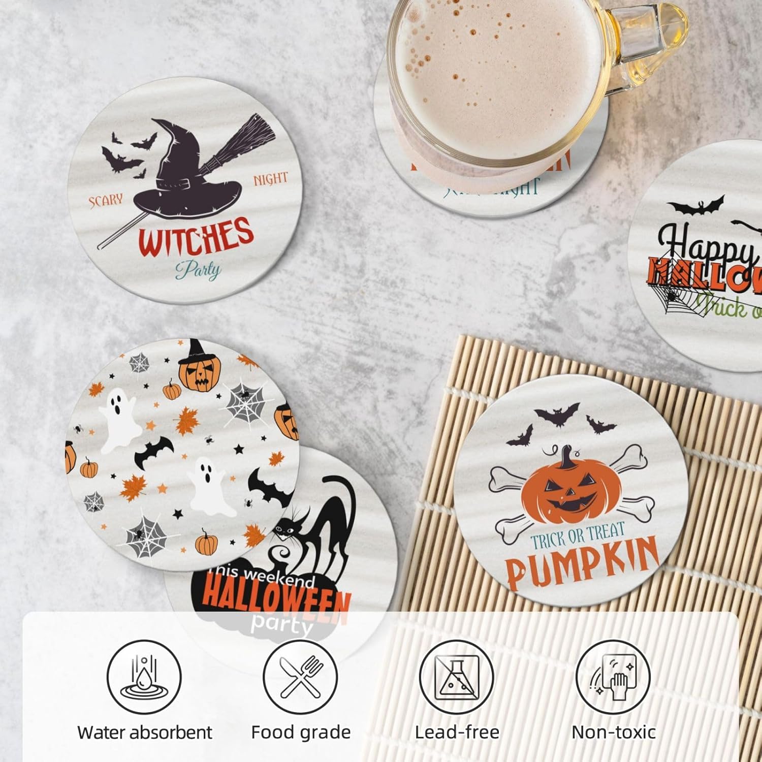- GREAT WATER ABSORPTION - These coasters are made of ceramic stone which works better, It can absort water or drink stains more quickly and keep table dry and clean.