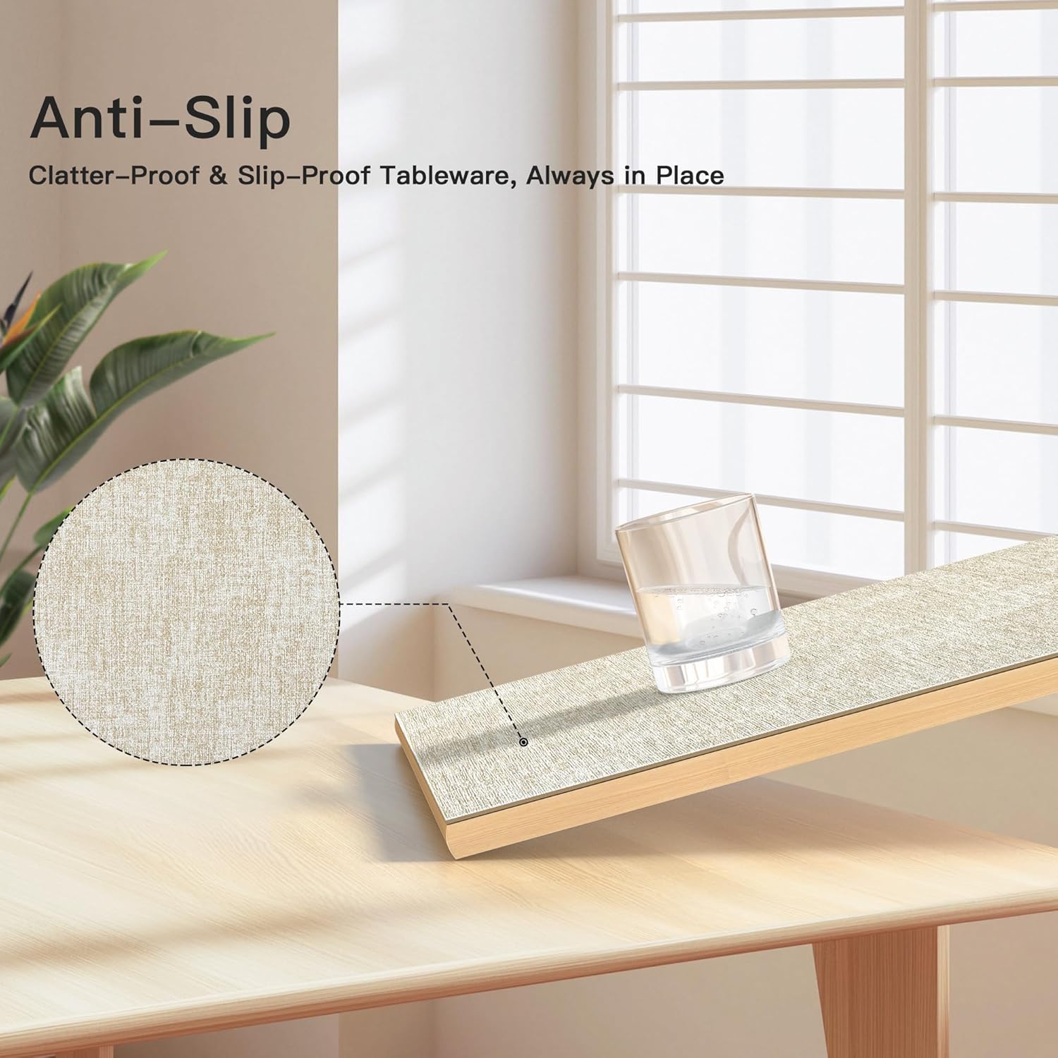 - 【Effortless Cleaning & Anti-Slip Design】Say goodbye to stubborn stains and slipping placemats. These wipeable place mats are a breeze to clean—just wipe or rinse. The subtly textured, double-sided surface stays securely in place and helps reduce clattering sounds, making every meal feel calm and refined.