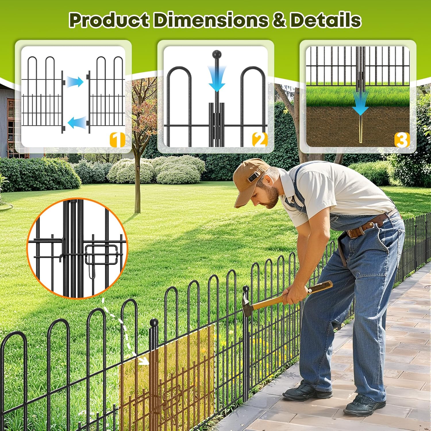 - 【Stable Fence Panels & 14.72" Deep Stakes】14.72-inch deep stakes anchor firmly into the ground. Durable metal fence panels resist weather, built for lasting yard use