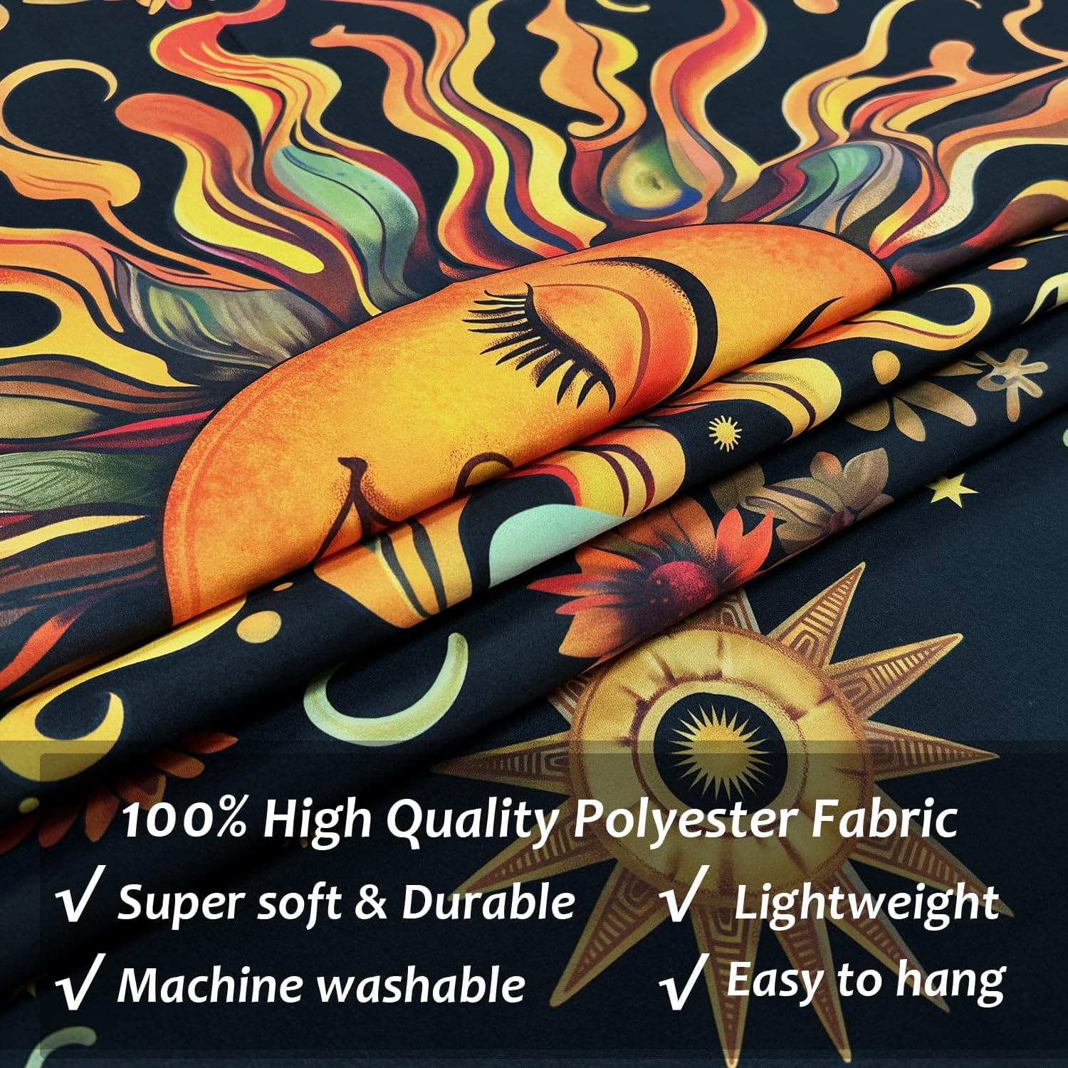 - High-Quality Tapestries: The sun moon tapestry is made of super non-fading polyester fabric, which is super soft, non-fading, light weight, and has no peculiar smell.