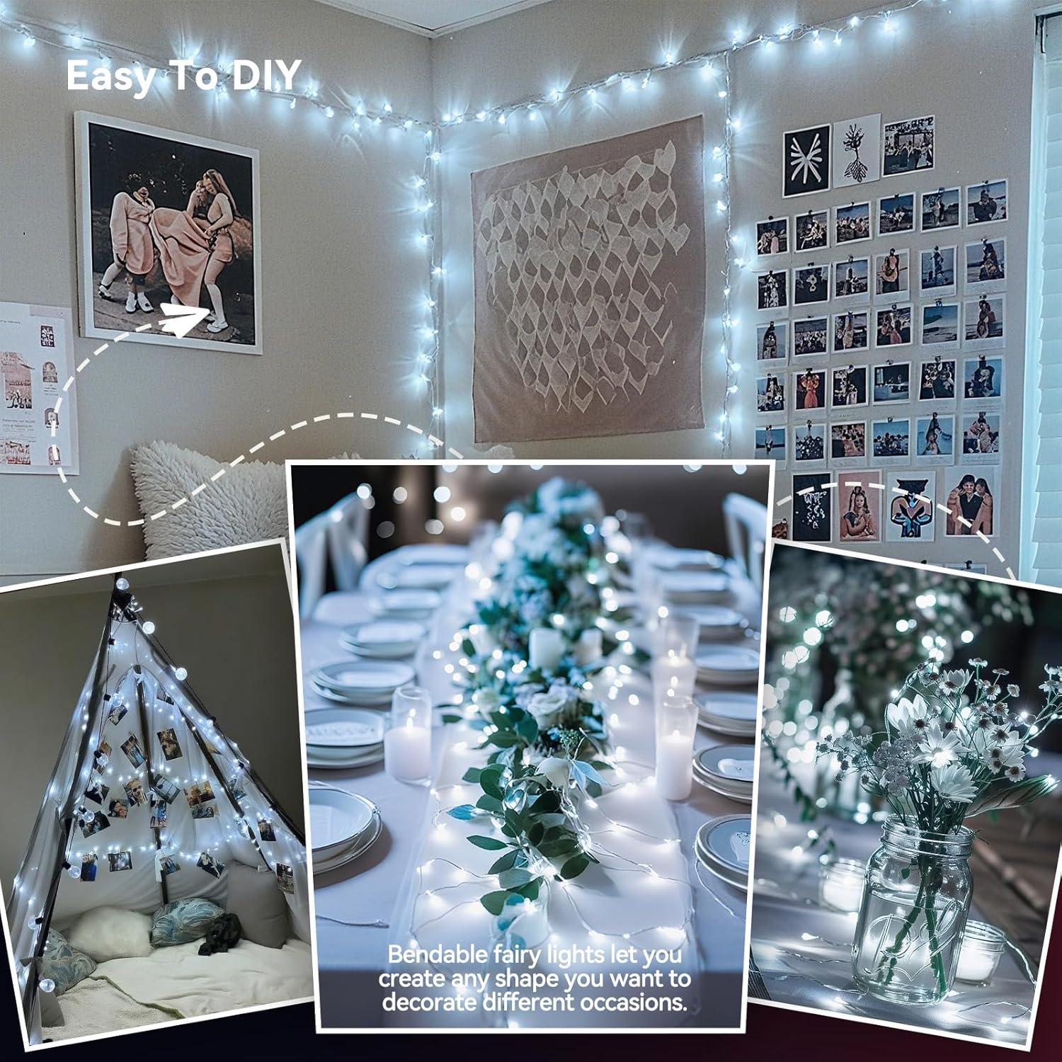 - Versatile Applications: Battery powered fairy lights are suitable for classroom, dorm, girl's bedroom, home, anniversaries, birthday, desk ornaments, wedding tables, garden plants, or jars/bottles. They not only enhance home aesthetics but are also perfect for holiday decorations like Halloween, Christmas. Featuring soft, safe, and non-glaring LED brightness, they transform every decoration into a lasting impression.