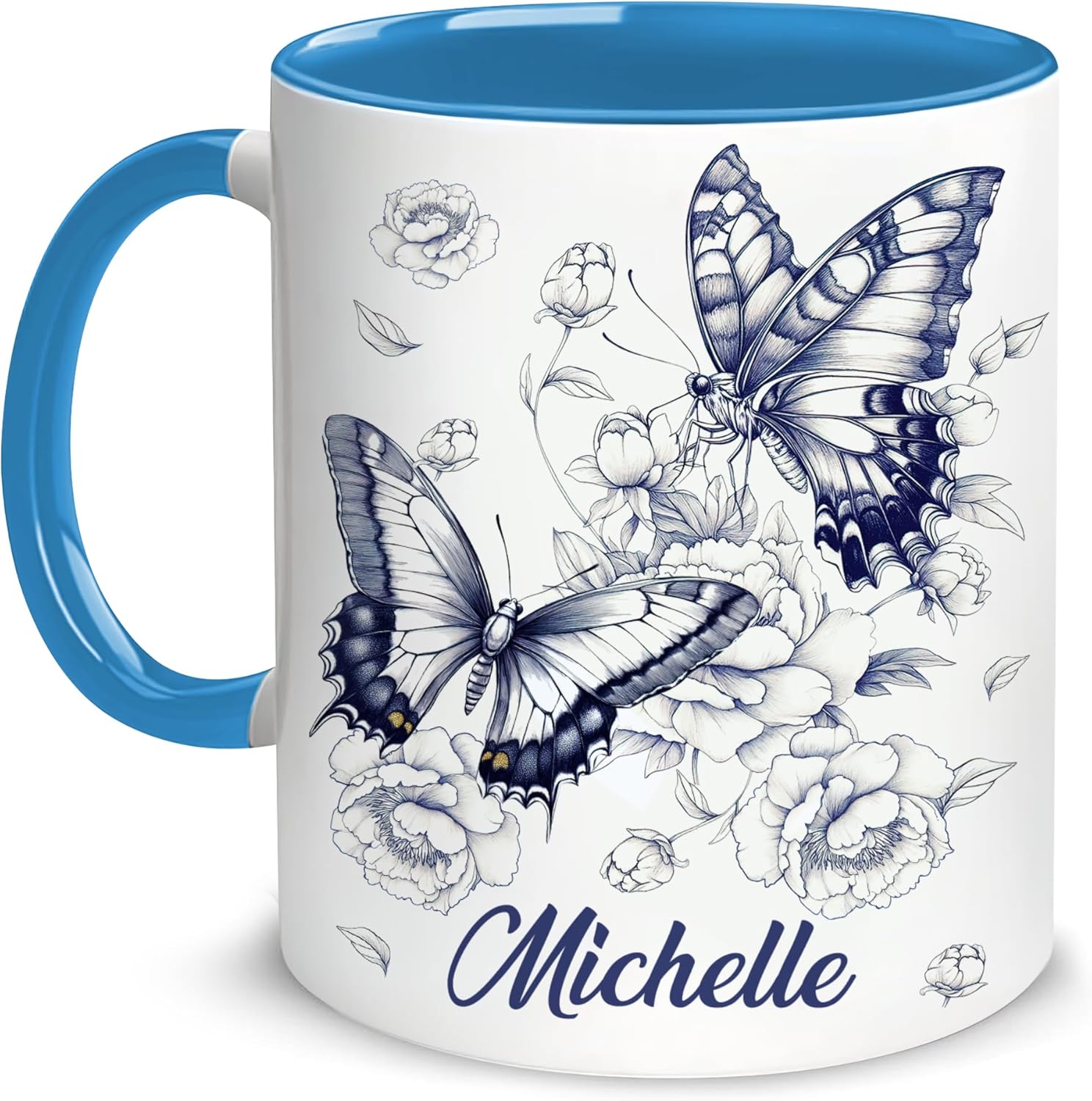 Hyturtle Personalized Blue Butterfly Mug - Butterfly Gifts For Women Lovers - Animal Gift For Bird Lover Her - Bird Gifts For Mom on Mother Day - Custom Name Coffee Cup Ceramic Mug 11 Oz 15 Oz