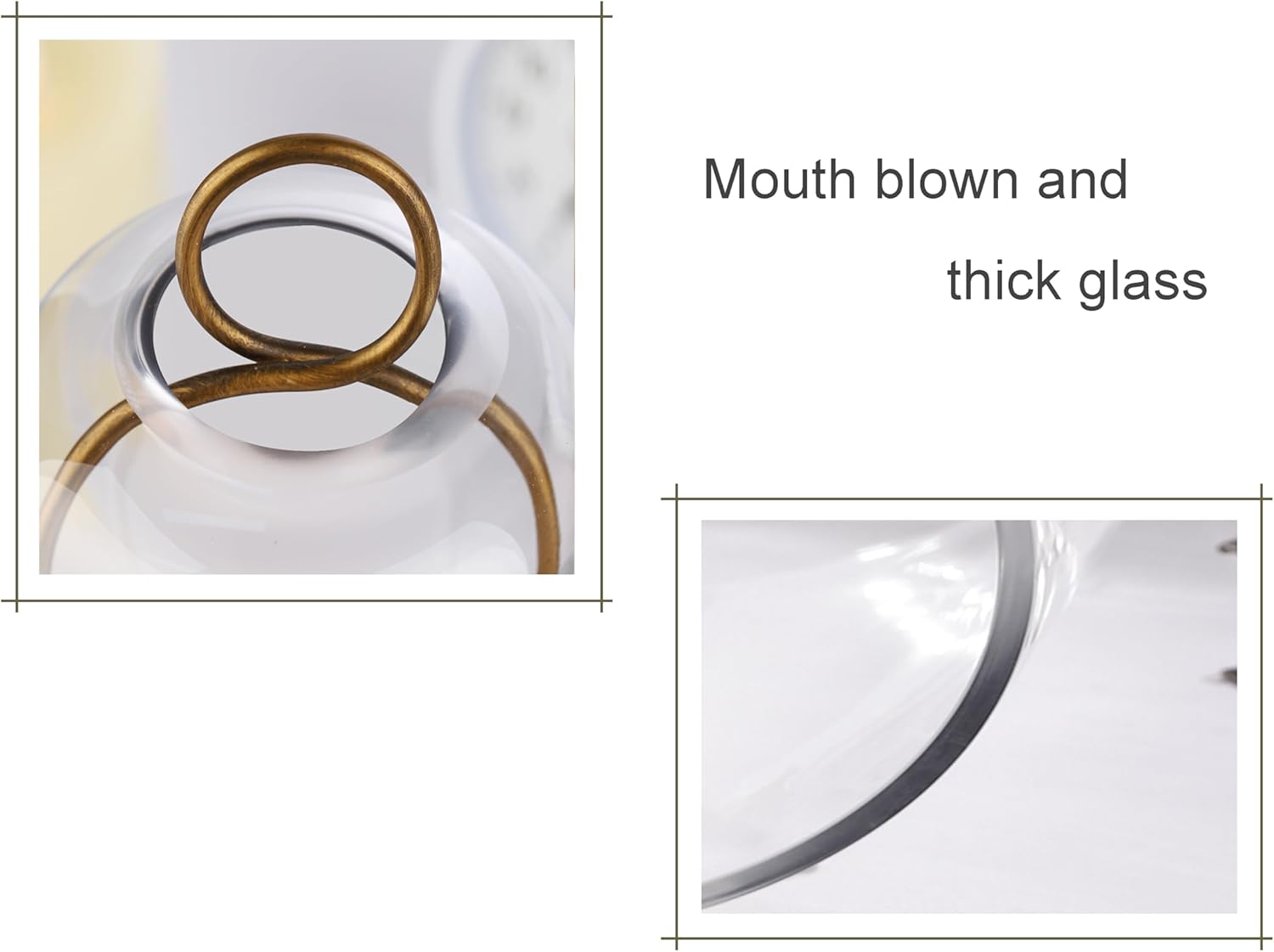5"x7.5" Versatile Modern Metal Hurricane Lantern with Handmade Sturdy Glass Dome for 3" Pillar Candle & Plants (Brass, 5"x7.5" for 3" Pillar)