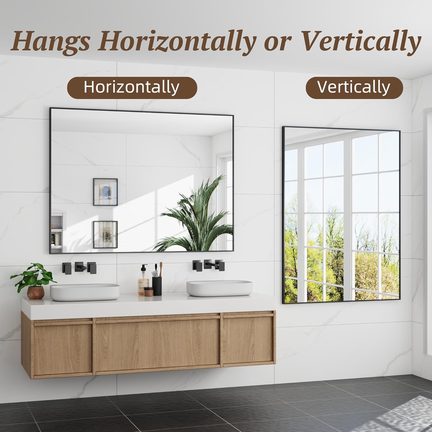 Bathroom Mirror 48" x 36", Large Rectangle Wall Mirror, Black Metal Frame Wall Mounted Mirrors for Bathroom, Vanity, Bedroom, Entryway Decor(Horizontal/Vertical)