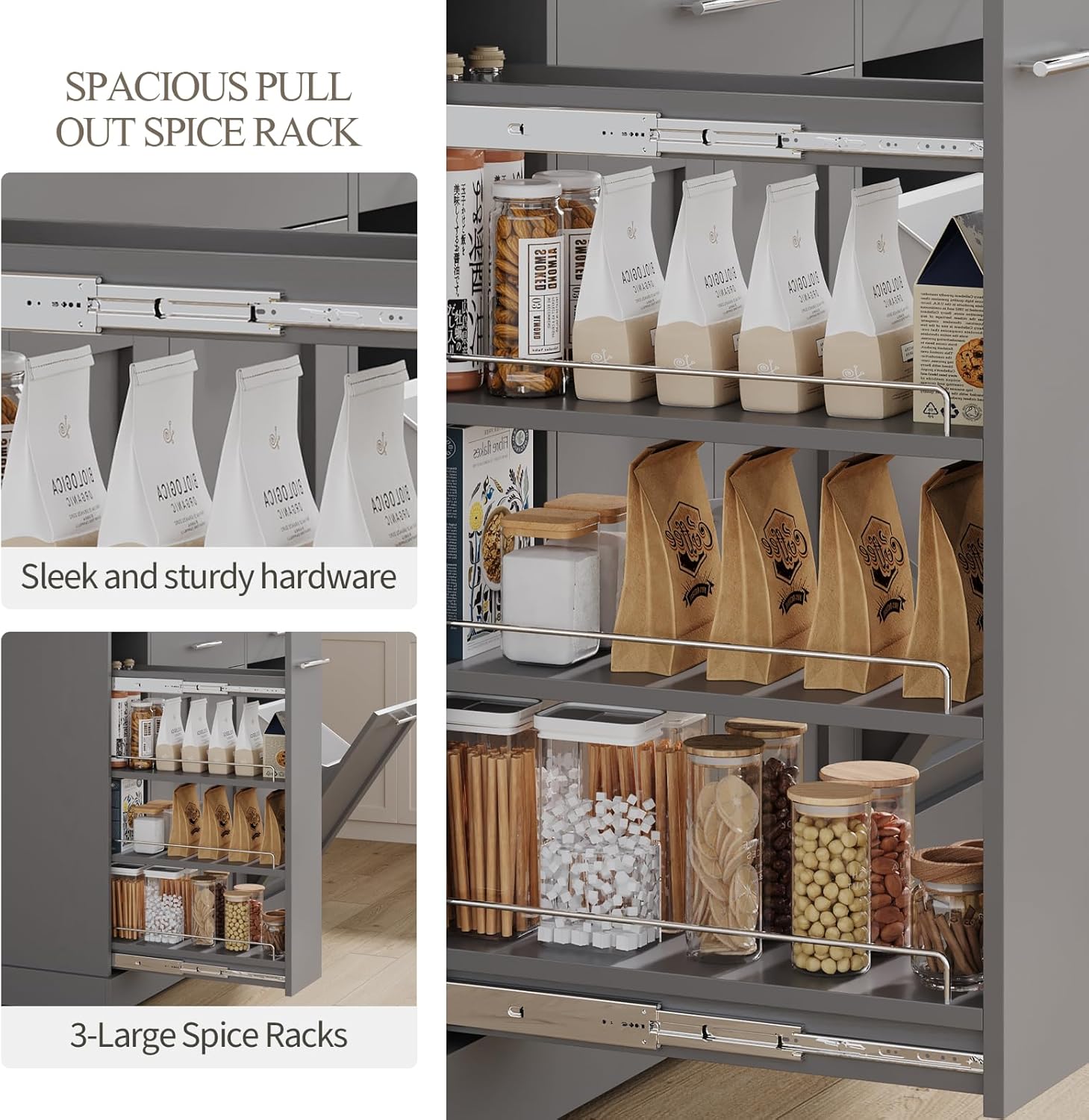 - Hidden Trash Cabinet: Keep kitchen cleanup tidy with a dedicated trash compartment (fits standard 13-gallon bin, sold separately). The enclosed design locks away odors and deters pets from scavenging - all while blending seamlessly into your island's streamlined look