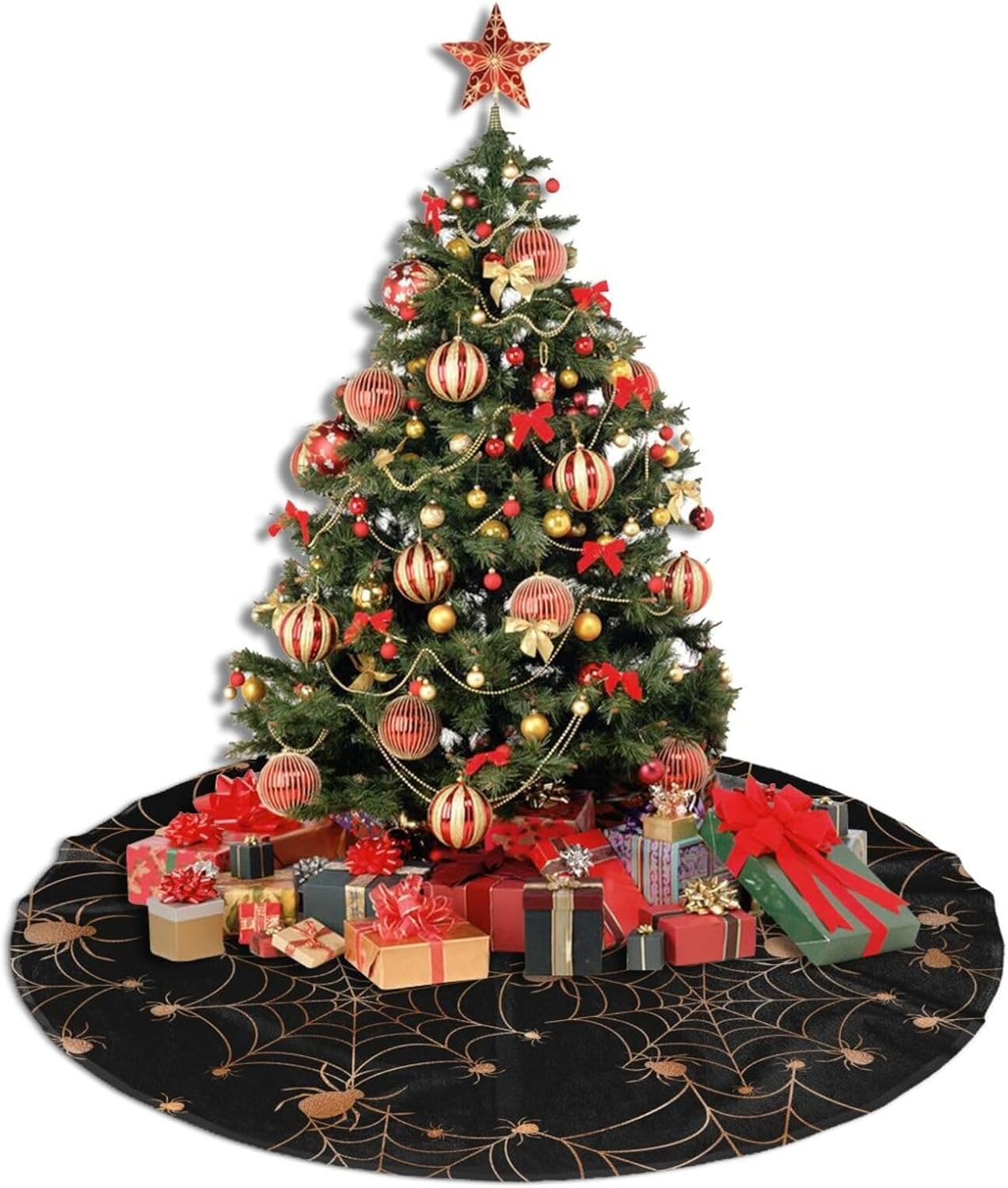 Christmas Tree Skirt,Gold Spider Web Xmas Tree Skirt Rustic Farmhouse Tree Skirt for Christmas Decor Xmas Holiday Home Party Decorations36