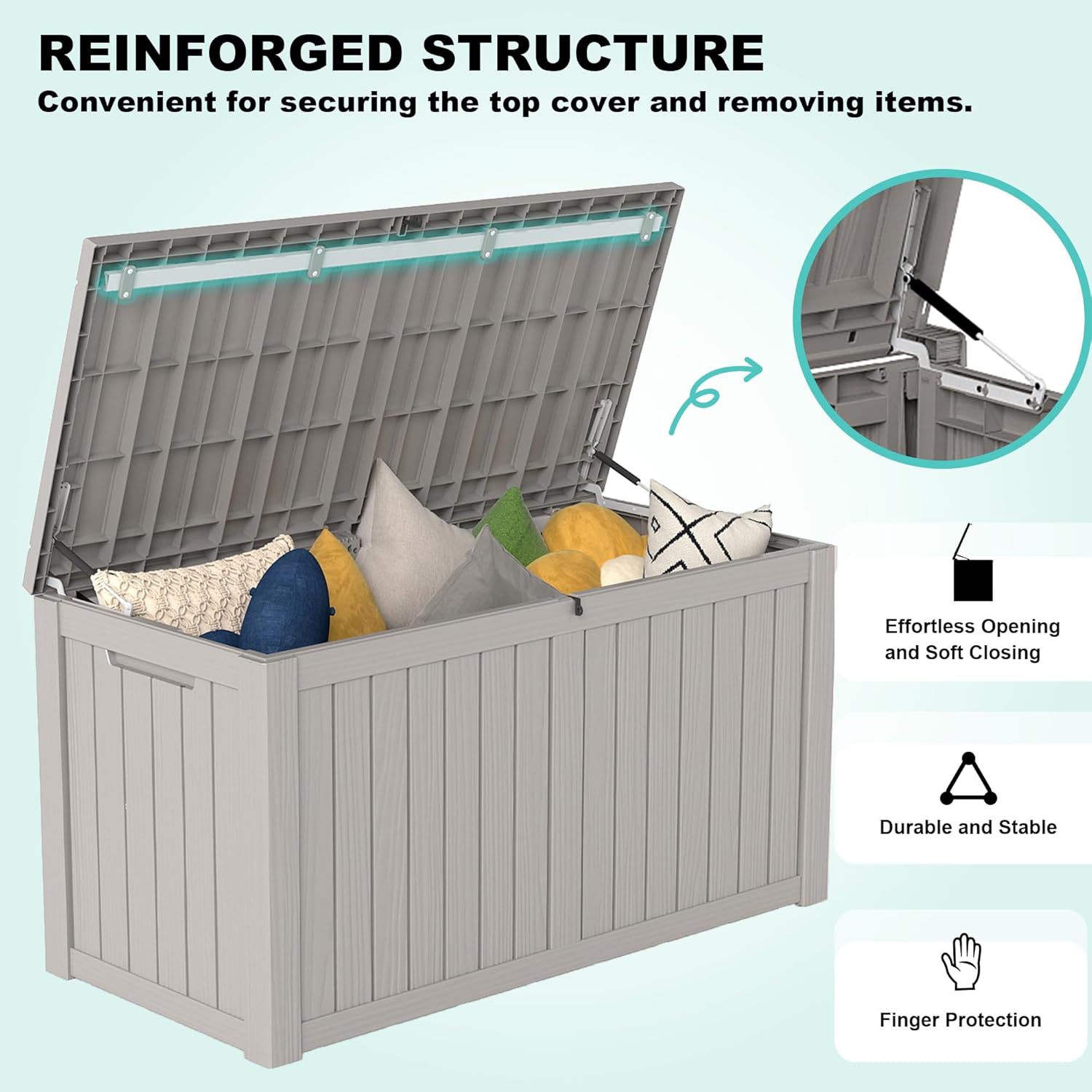 150Gal Outdoor Deck Box Waterproof, Lager Patio Storage Box Indoor and Outdoor Use, Lockable Resin Storage Bin for Patio Furniture Cushions Garden Tools, Package Delivery,UV Resistant-Grey