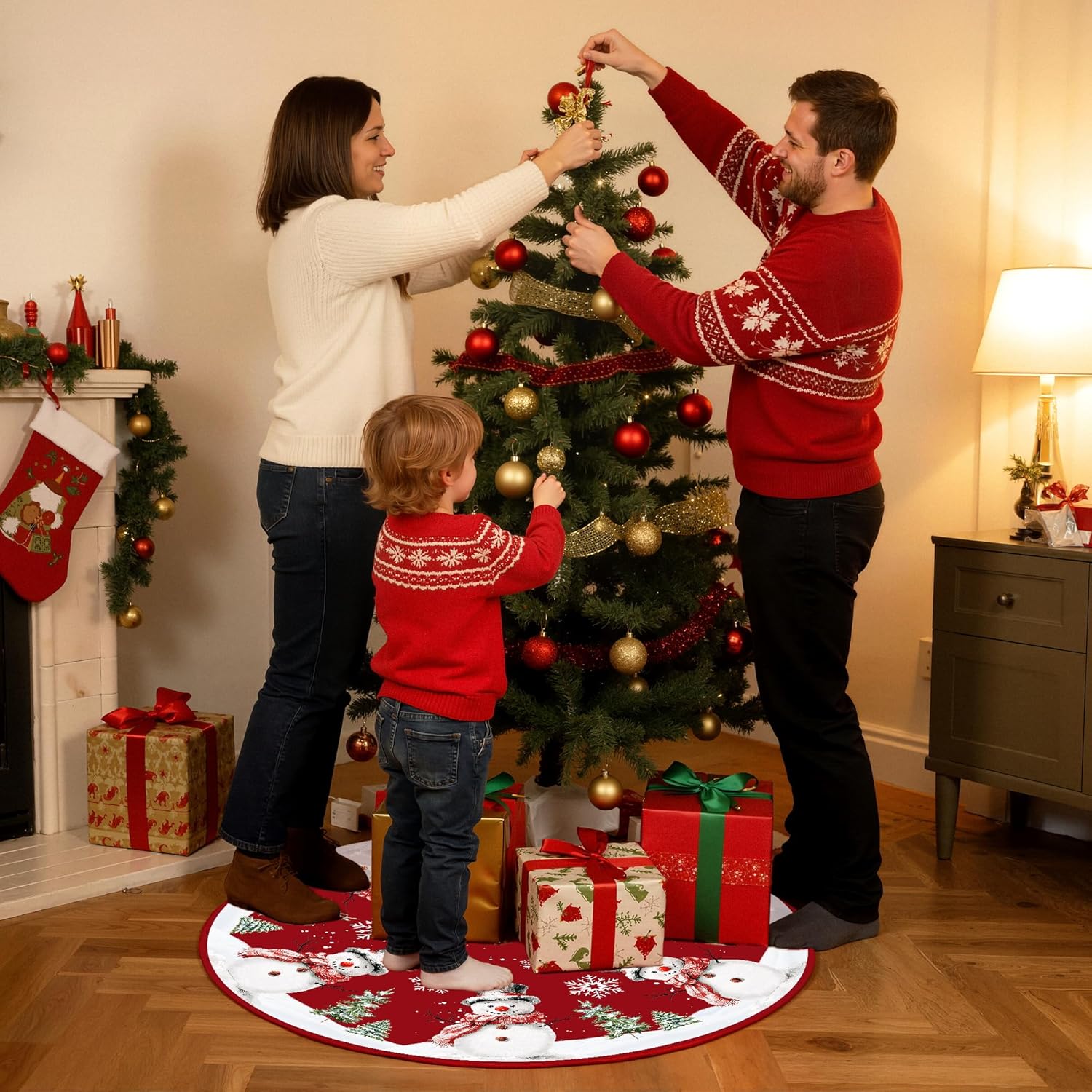 - Perfect Size: With a diameter of 48 inches, this red Christmas tree skirt fits trees ranging from 4 to 7.5 feet tall. It drapes elegantly around the base, concealing stands and cords while perfectly showcasing your Christmas gifts. Place gifts on the Christmas Tree Skirt Mat to share with family and friends, enjoying wonderful Christmas moments together.