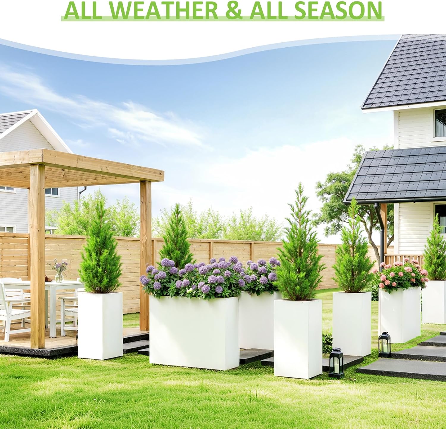 - AMPLE SPACE: With exterior measurements of 38"W x 10.2"D x 30"H, the outdoor planter offers ample space for your plants, like faux cedar trees, grouping several plants.