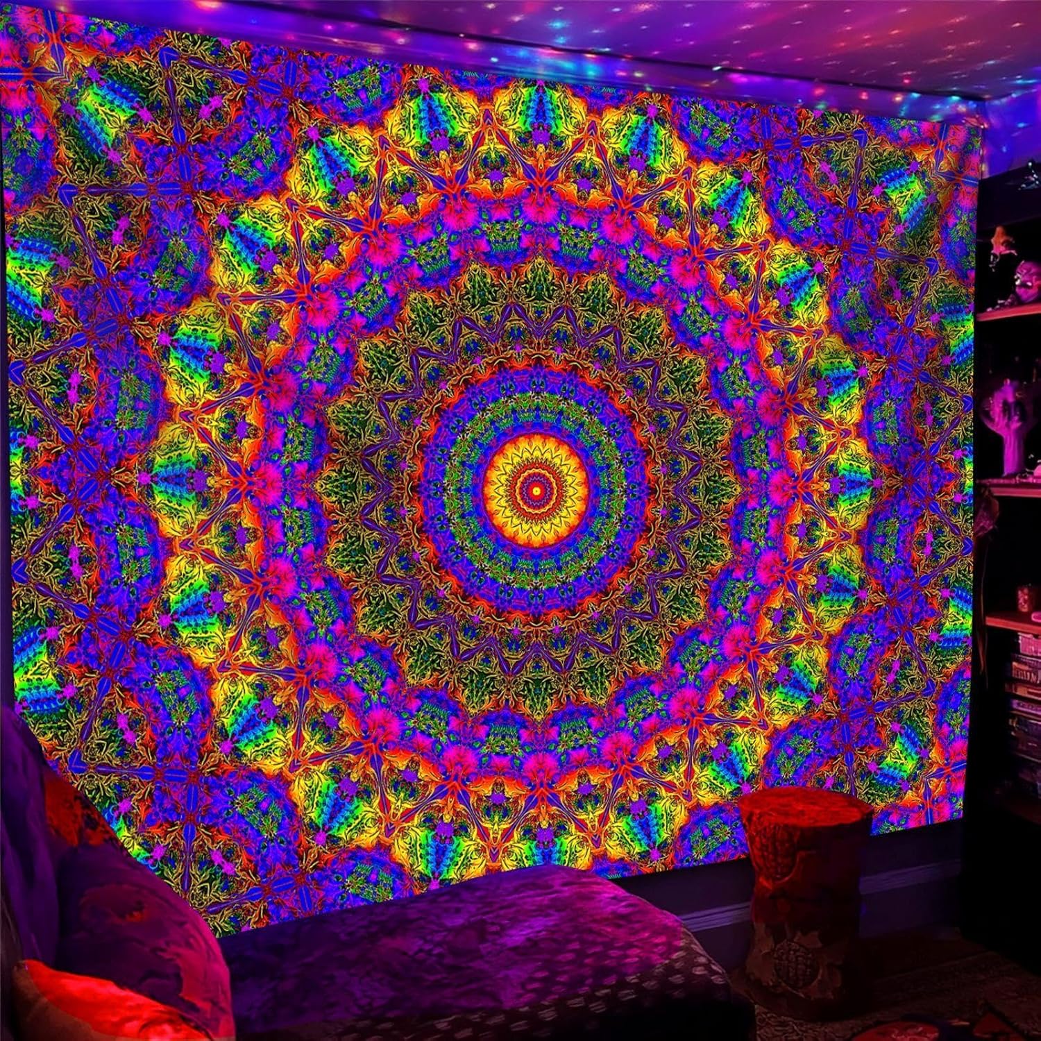 - UV REACTIVE: Utilizing special ink and advanced HD printing technology, our tapestry boasts a powerful blacklight effect and vibrant colors under black light, UV light, and neon.