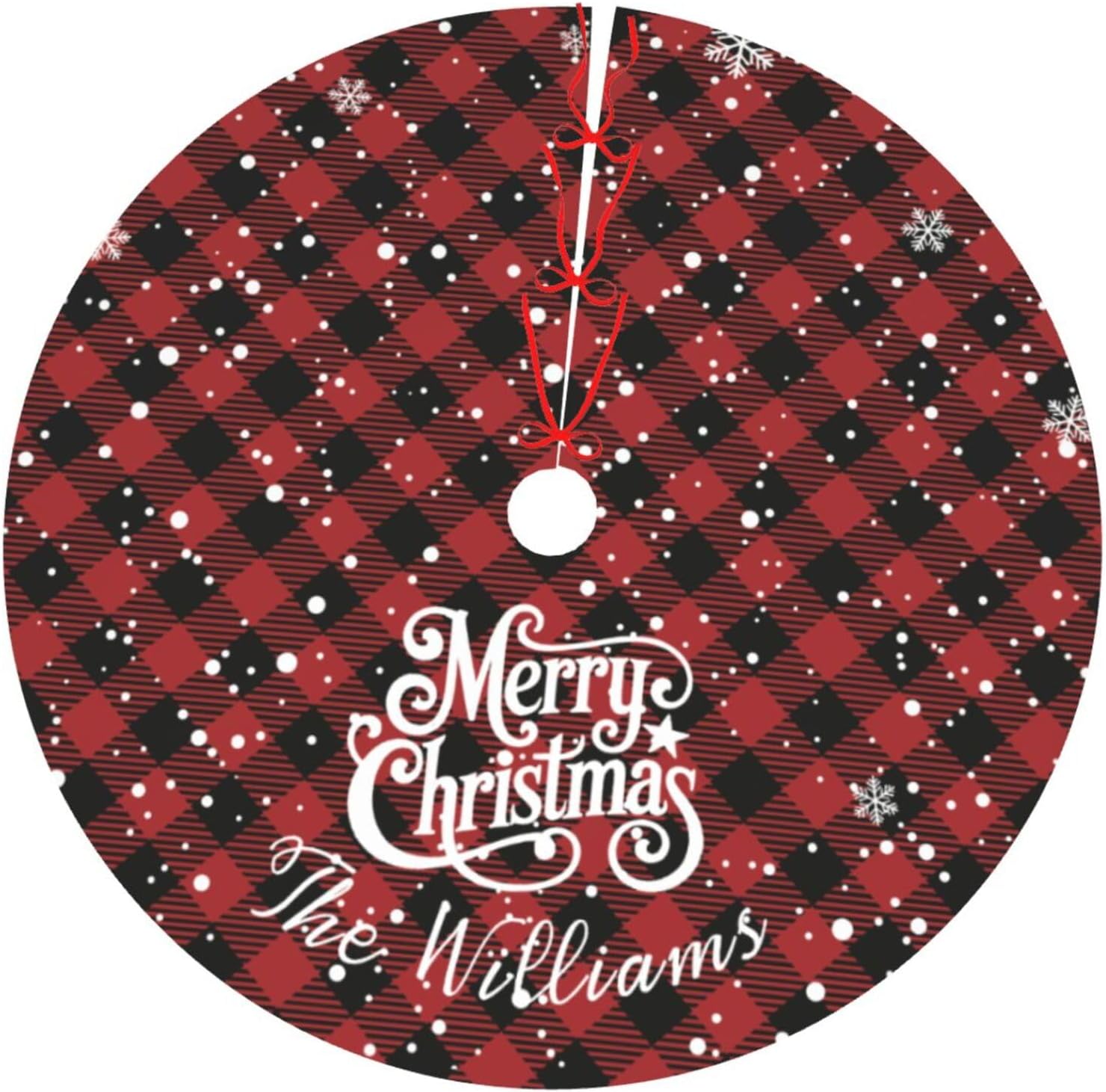 Custom Plaid Christmas Tree Skirt with Name, Personalized Holiday Xmas Tree Decor Gifts for Party Family Home, 30" - 48"