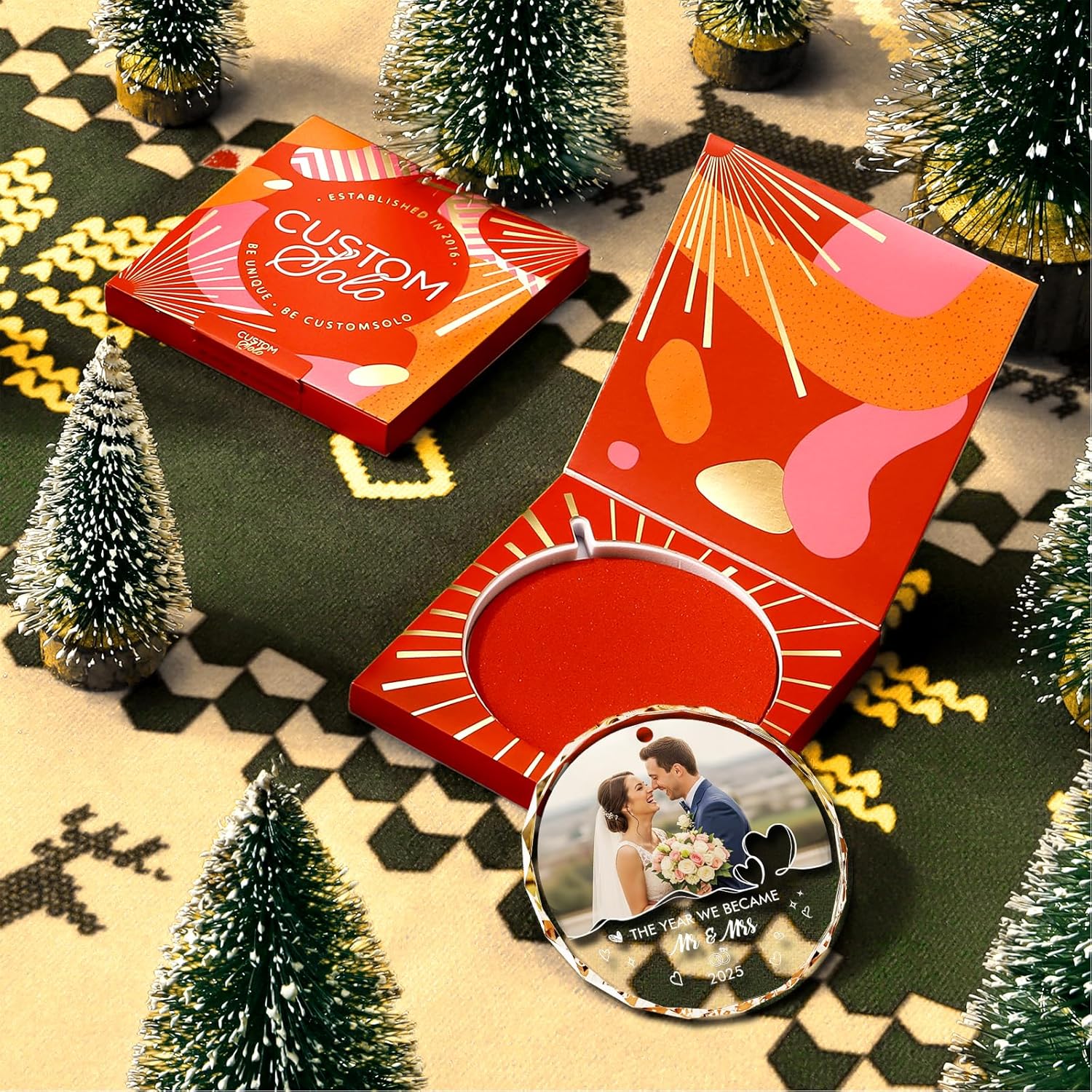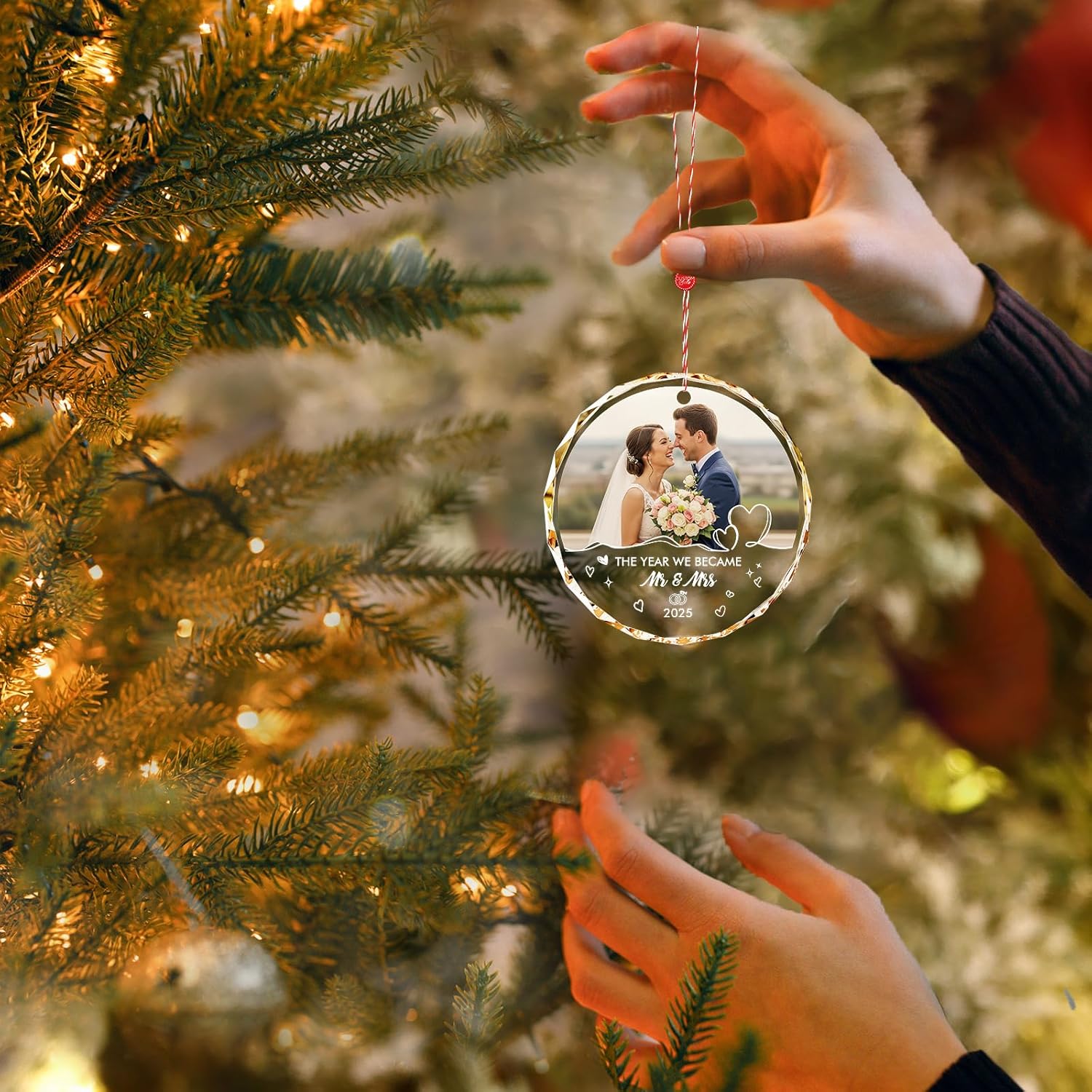 - 🌟 Personalized Just for You – Upload a favorite photo from your big day and add your names or wedding date. Each ornament is custom-made, turning your love story into a one-of-a-kind Christmas treasure